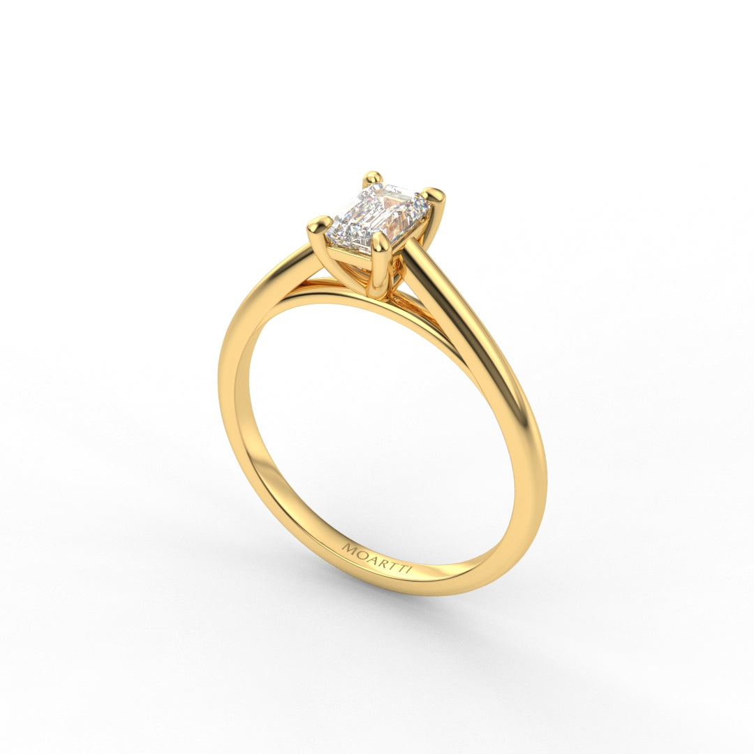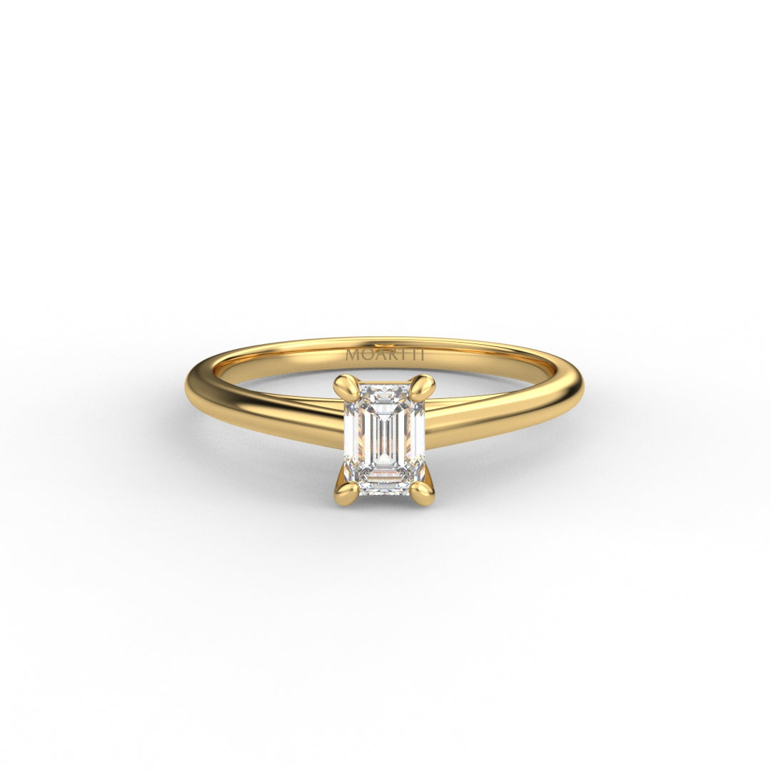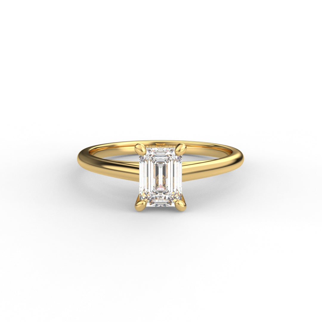 18K Gold Emerald Cut Diamond Cathedral Engagement Ring Classic Basket