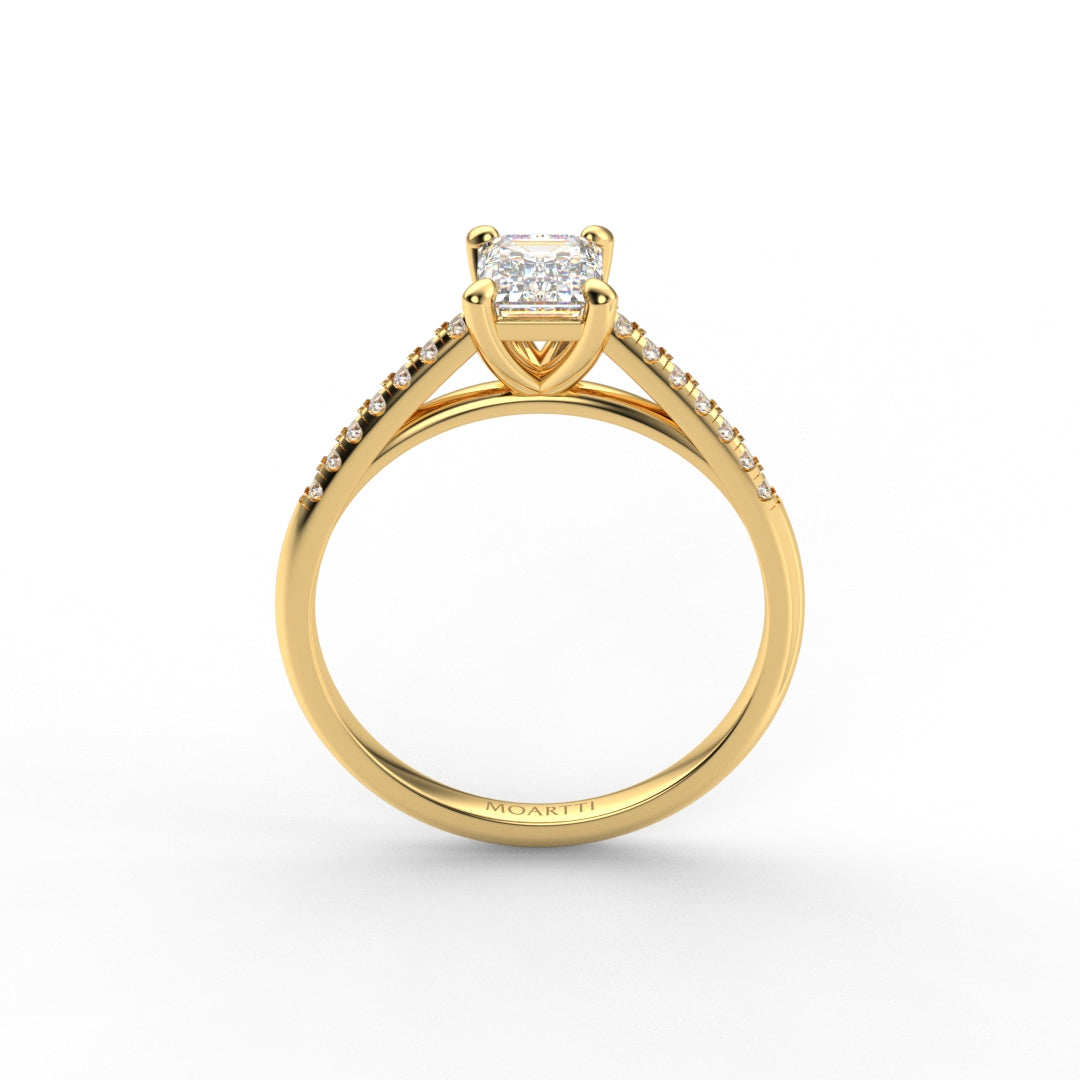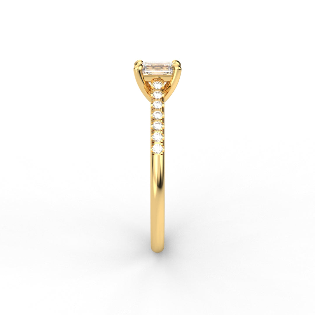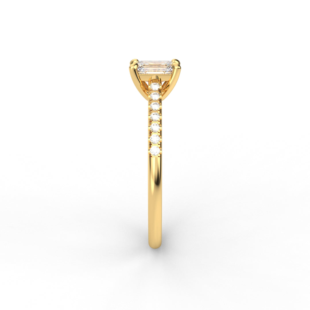 18K Gold Emerald Cut Diamond Cathedral Pavé 1.5mm Engagement Ring Classic Basket