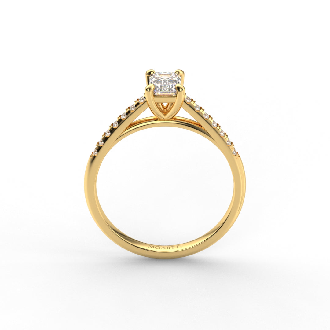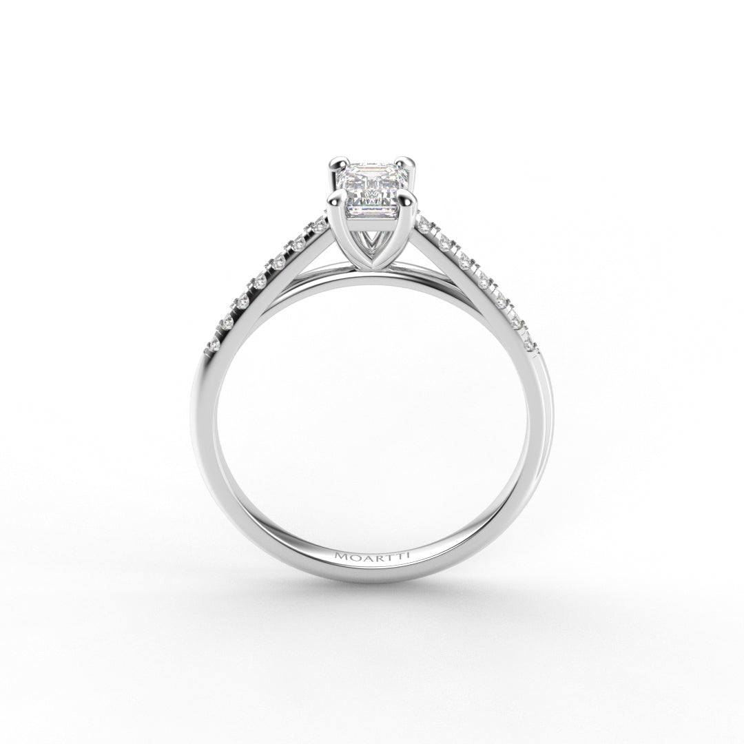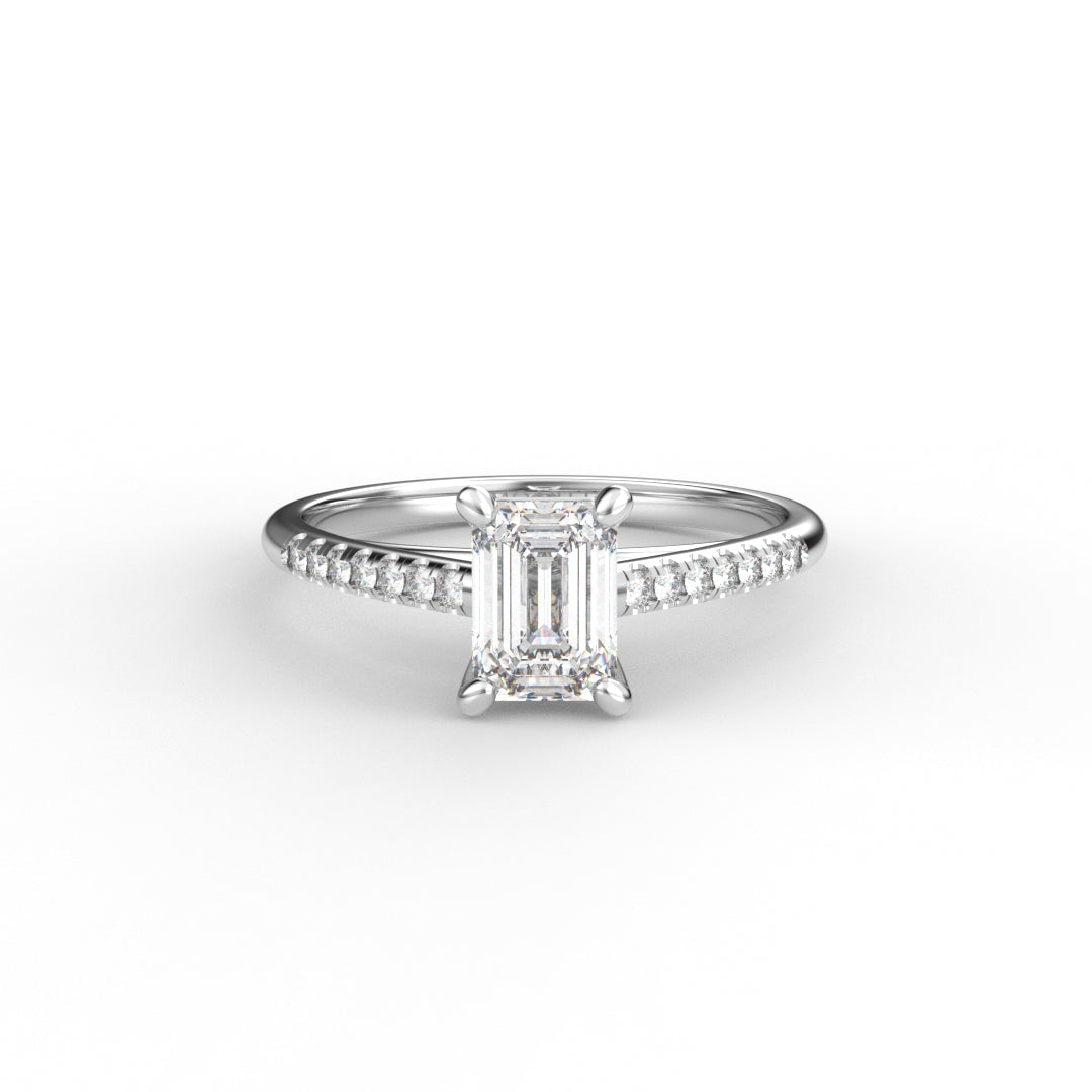 18K Gold Emerald Cut Diamond Cathedral Pavé 1.5mm Engagement Ring Classic Basket