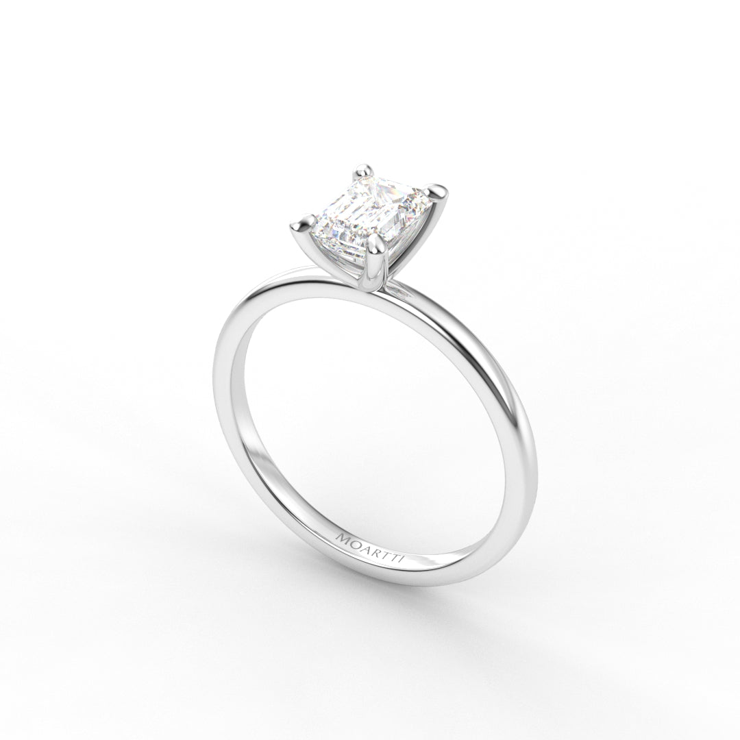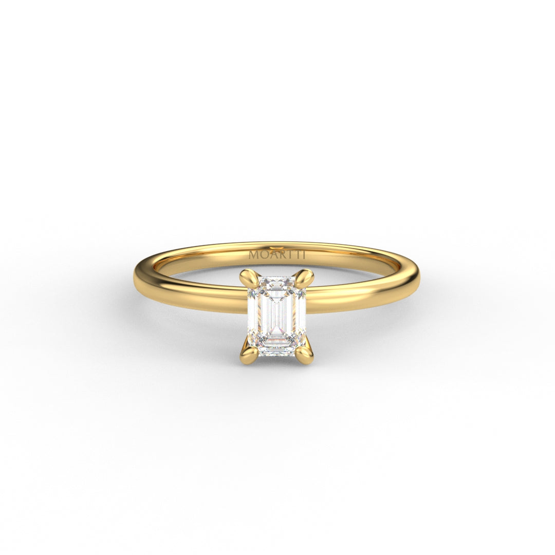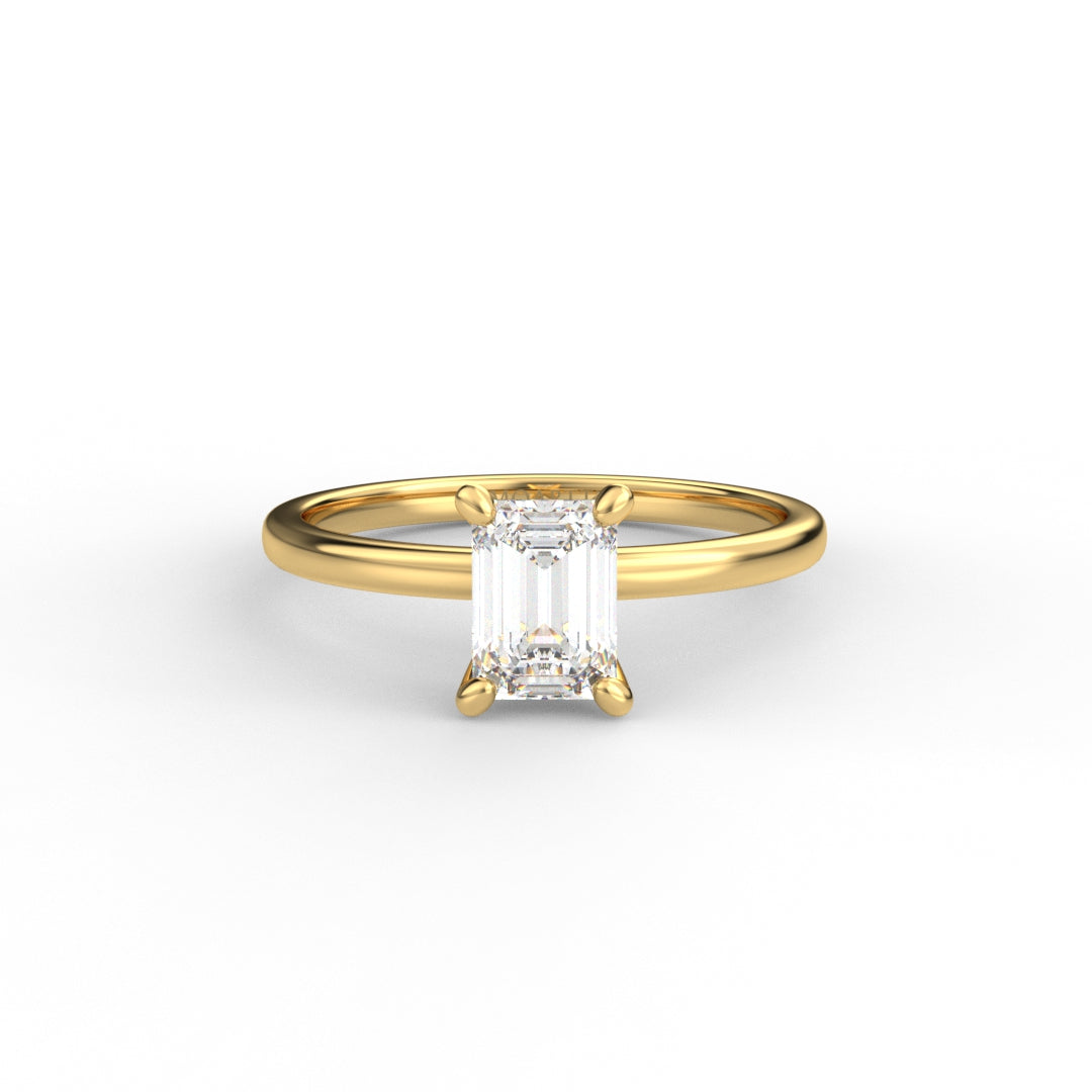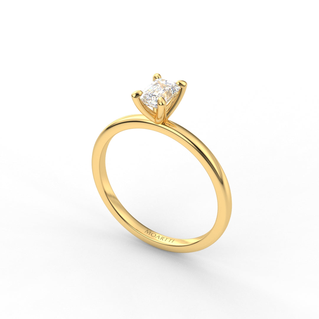18K Gold Emerald Cut Diamond Solitaire Engagement Ring 4-Prong