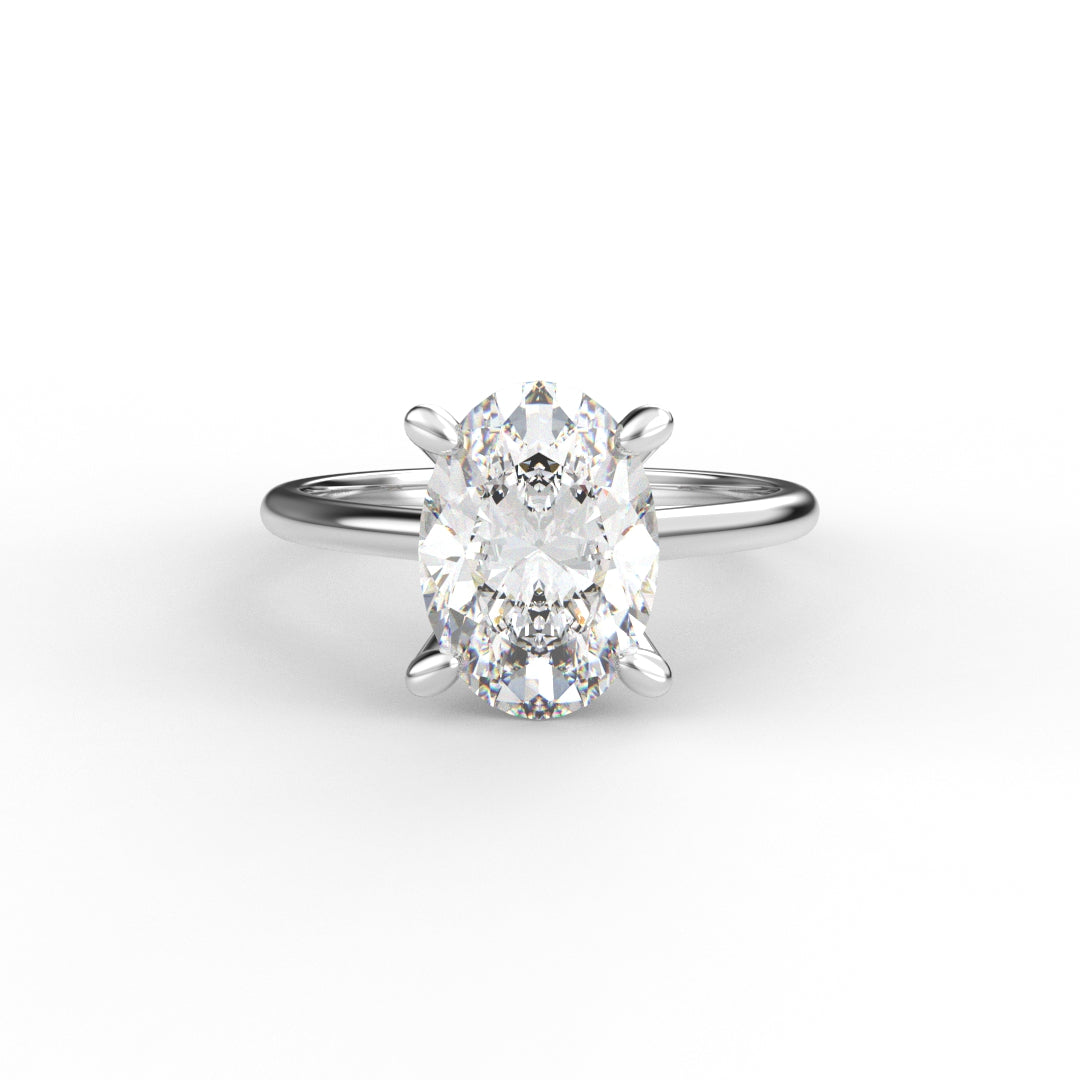 18K Gold Oval Cut Diamond Cathedral Engagement Ring 4-Prong