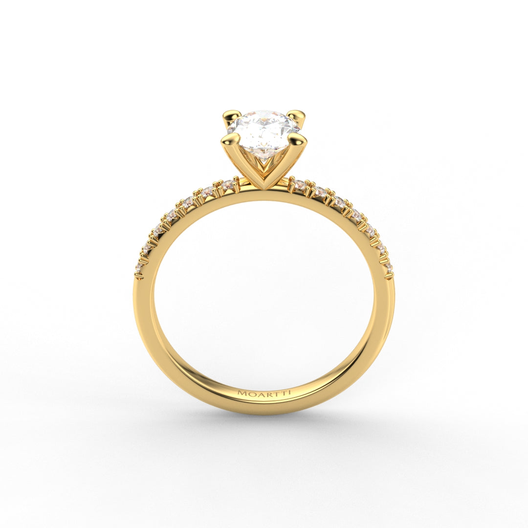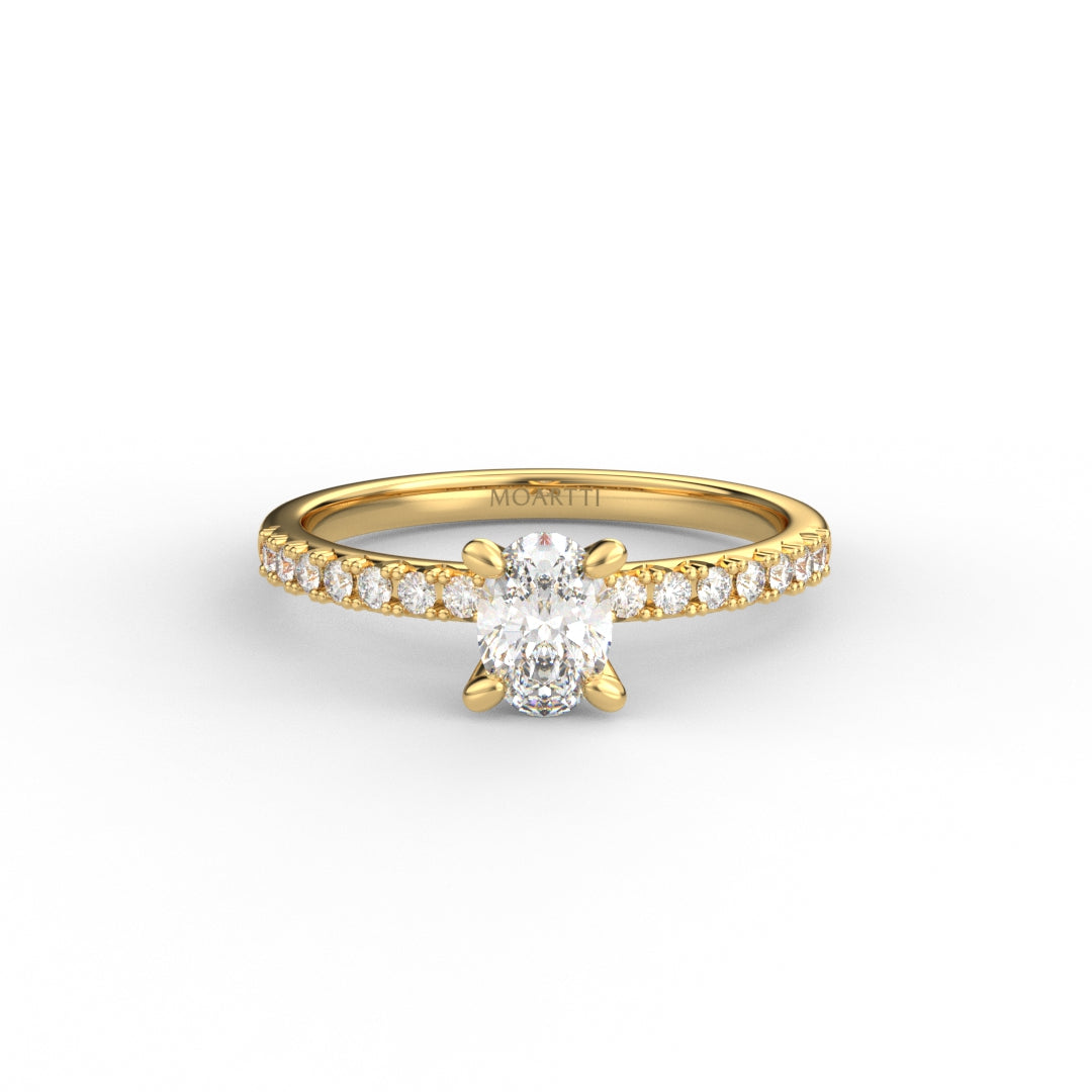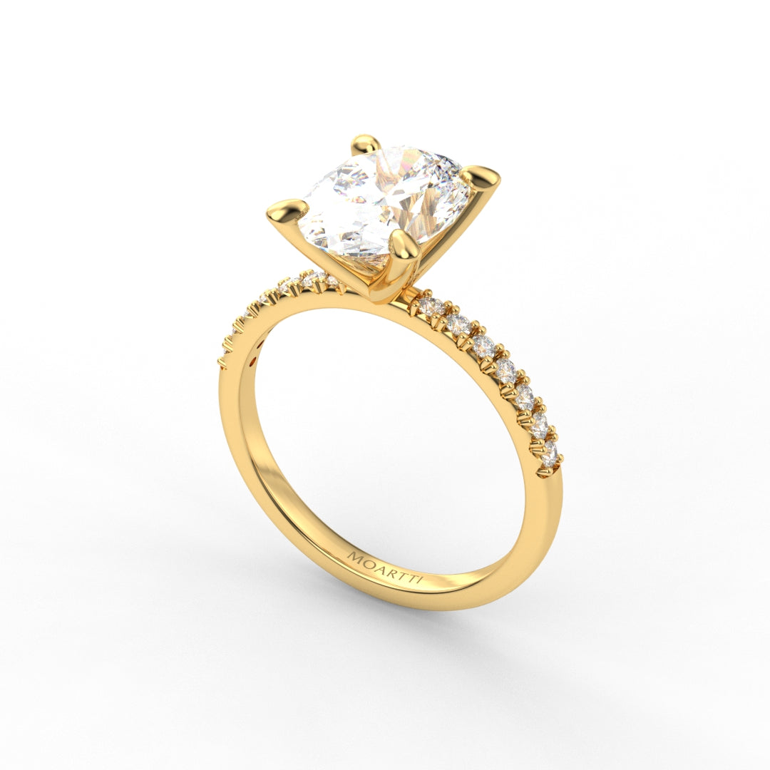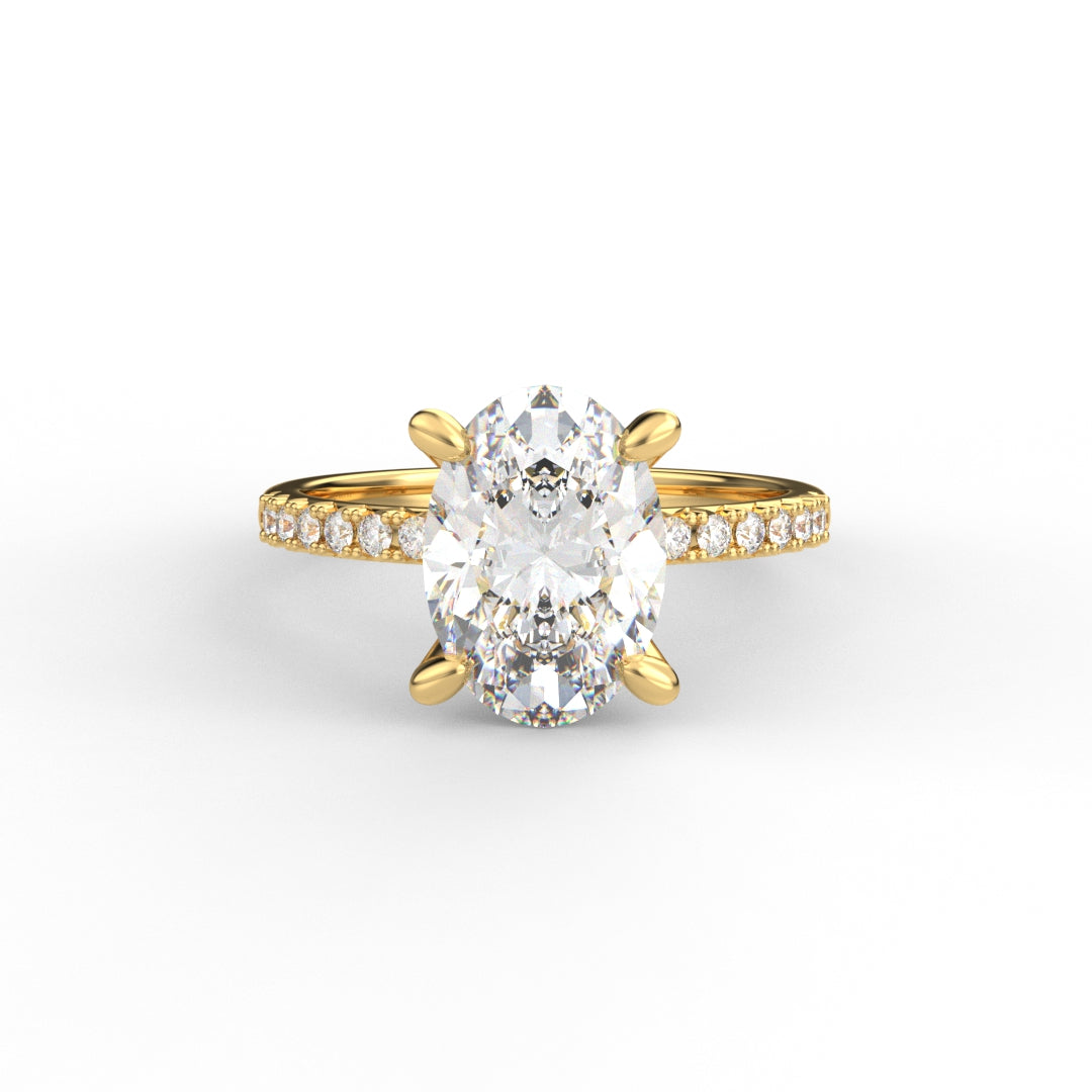 18K Gold Oval Cut Diamond French Pavé 1.5mm Engagement Ring 4-Prong