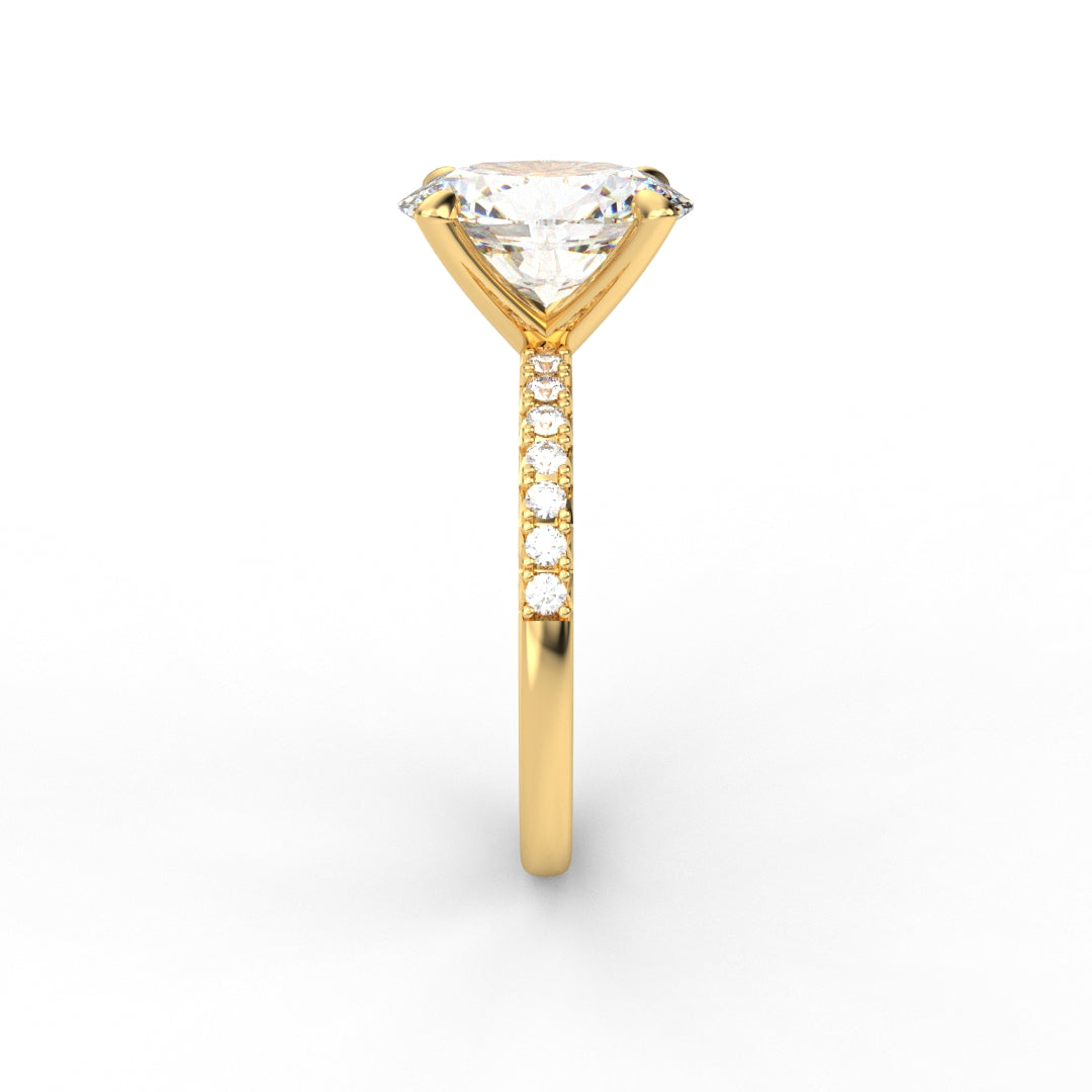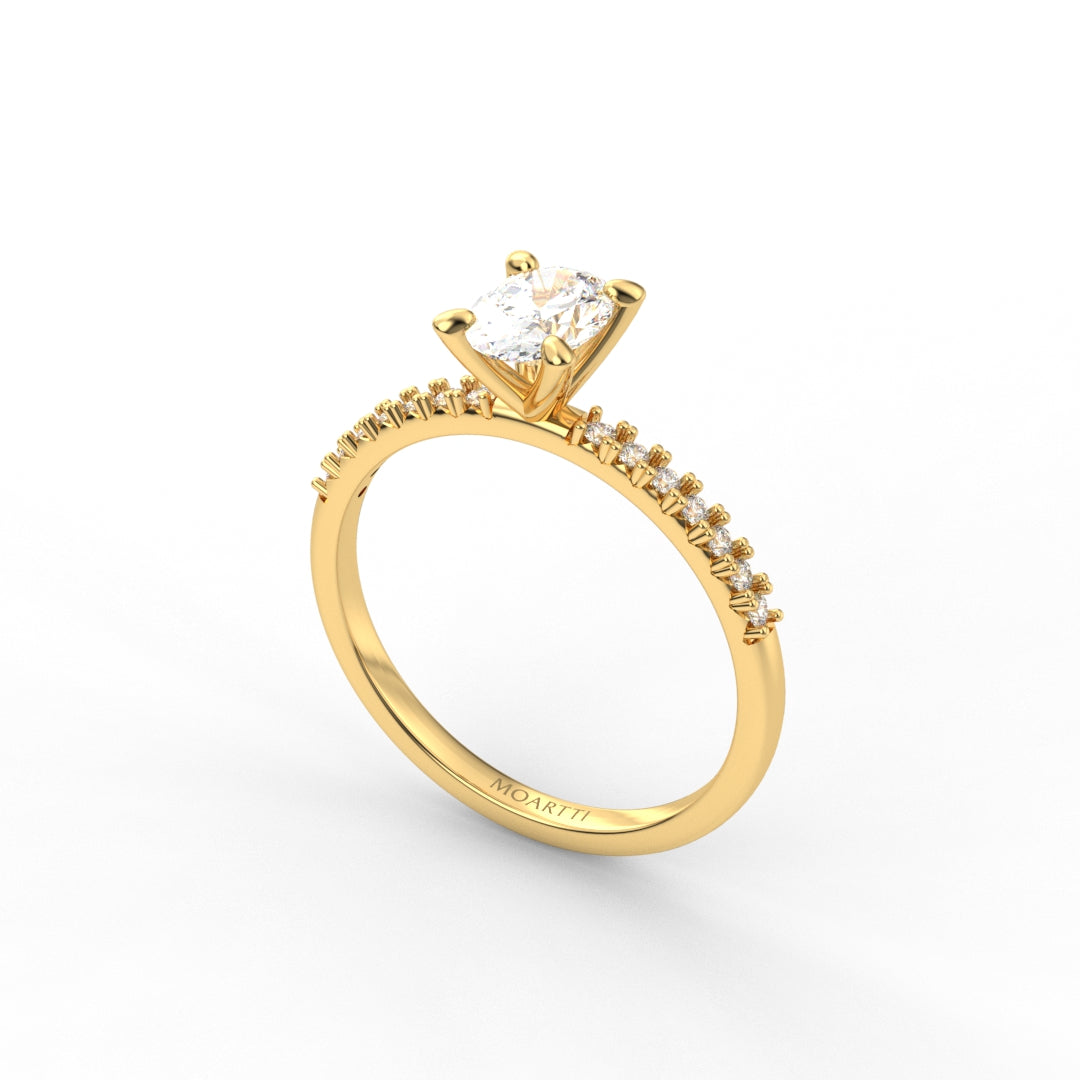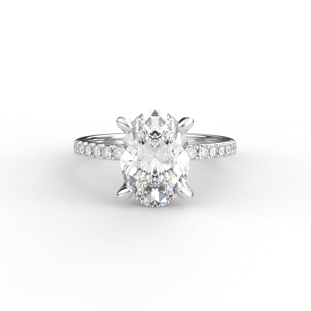 18K Gold Oval Cut Diamond French Pavé 1.5mm Engagement Ring 4-Prong