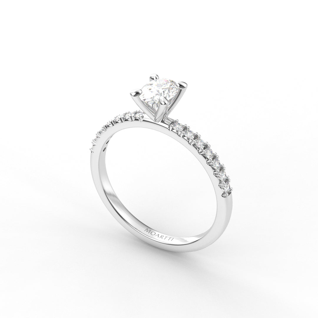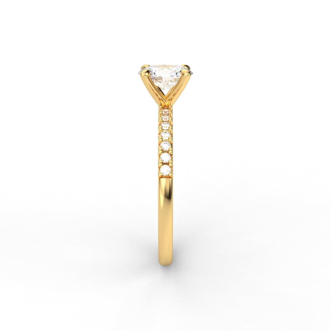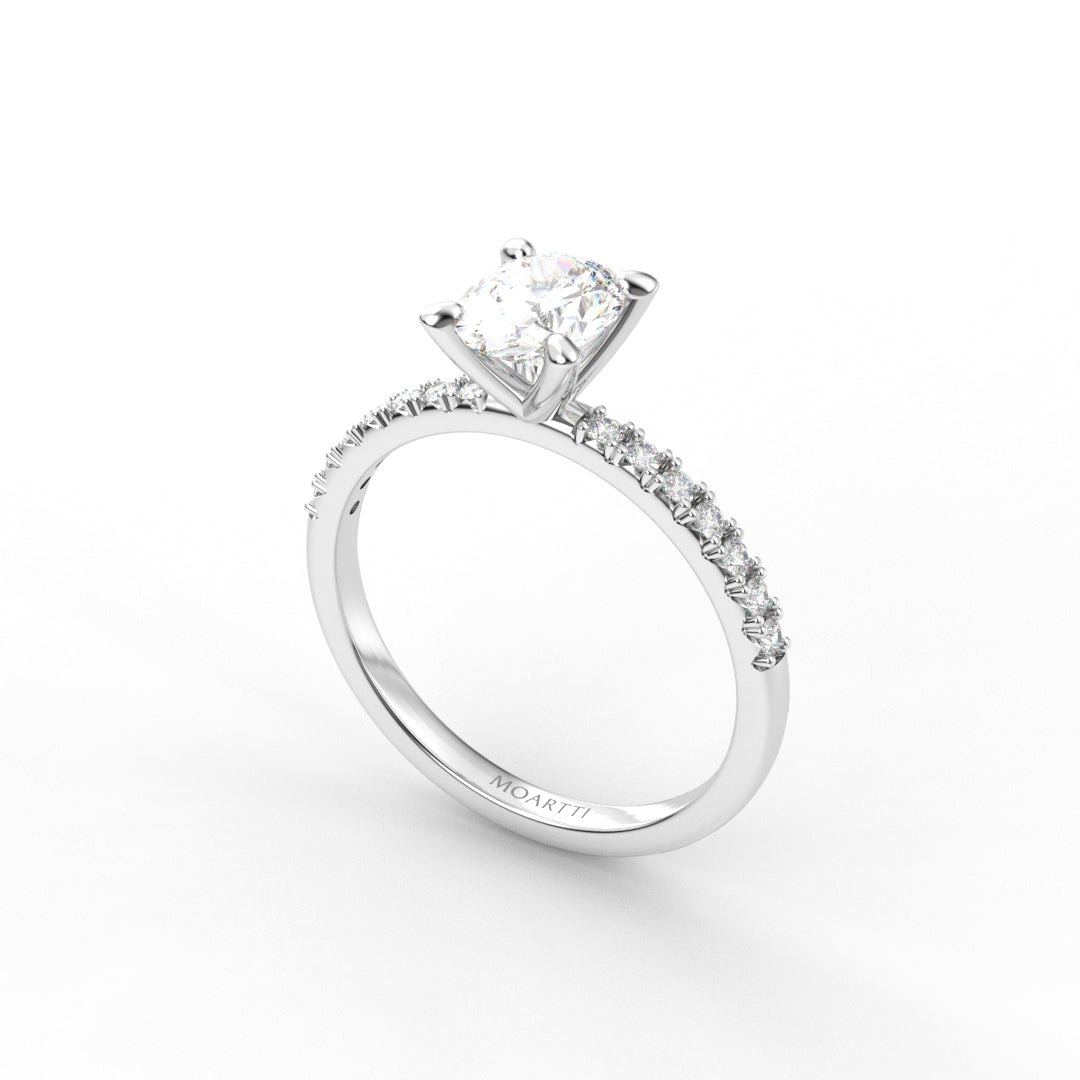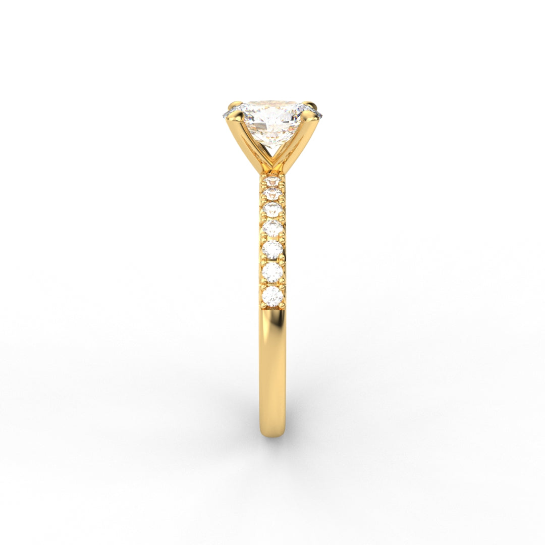 18K Gold Oval Cut Diamond French Pavé 1.5mm Engagement Ring 4-Prong
