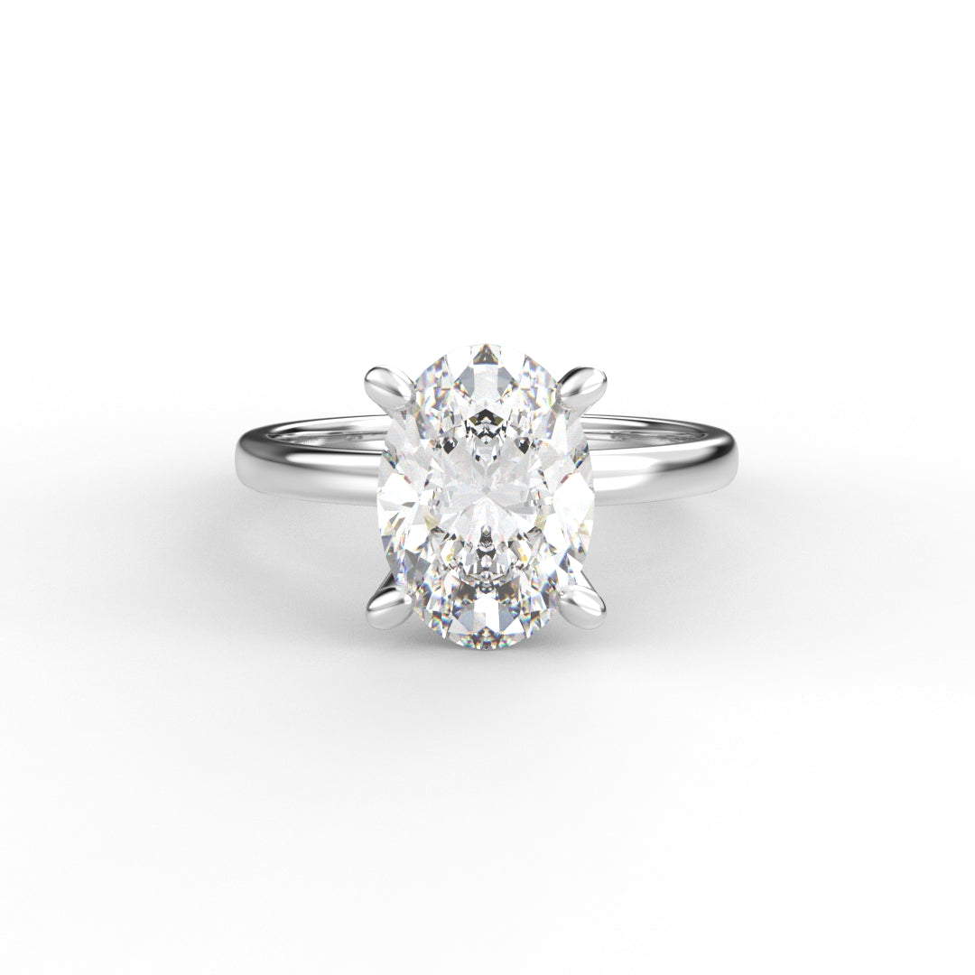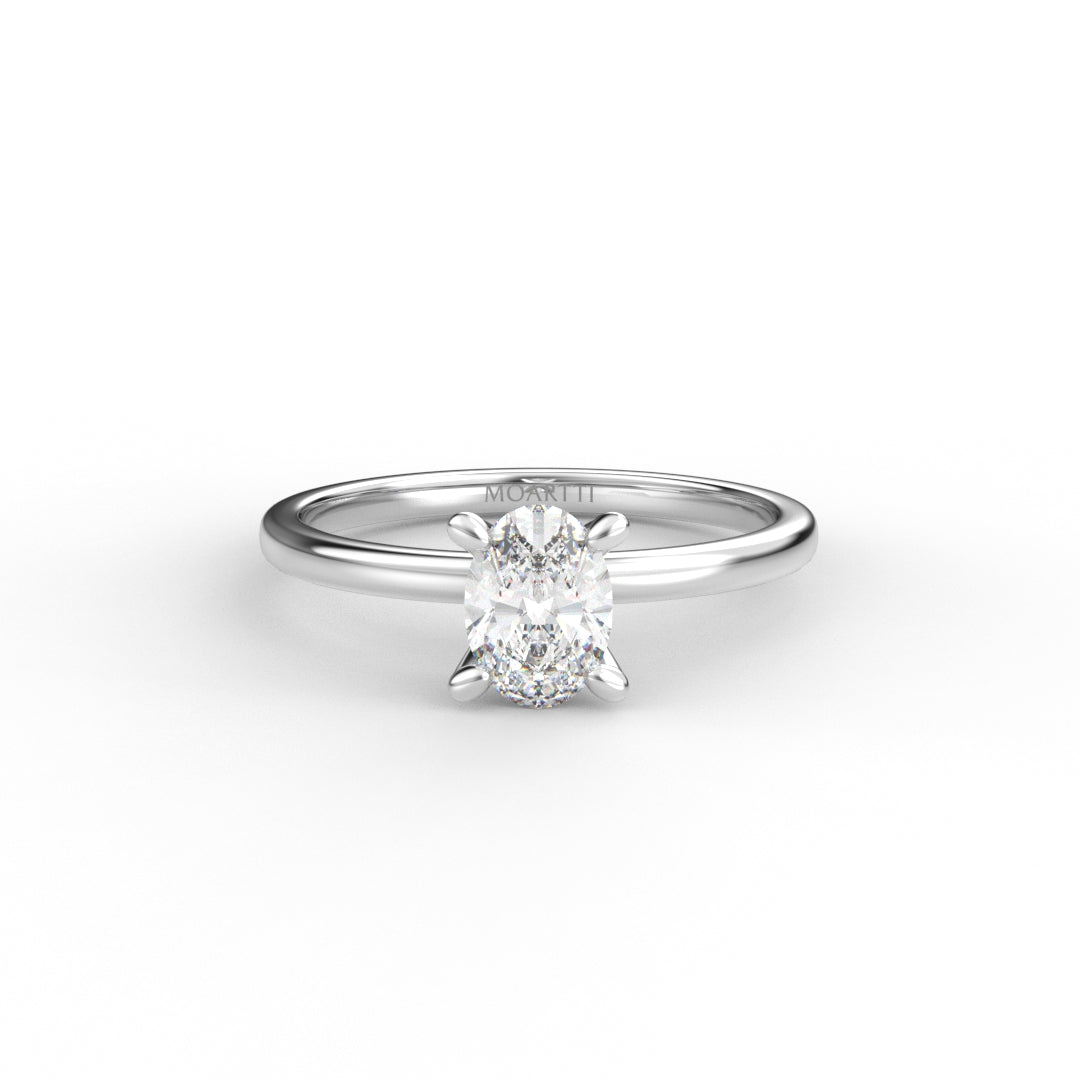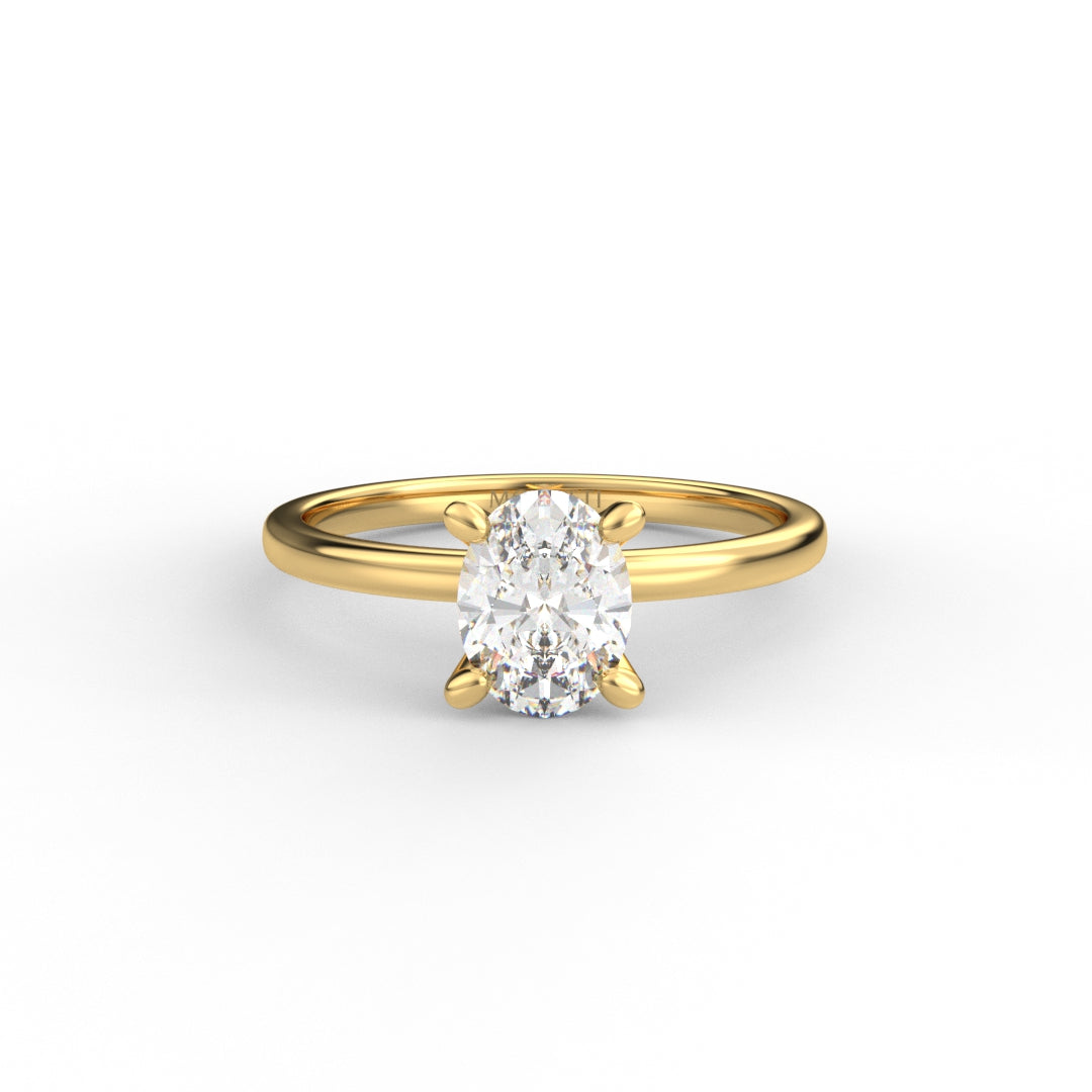 18K Gold Oval Cut Diamond Solitaire Engagement Ring 4-Prong