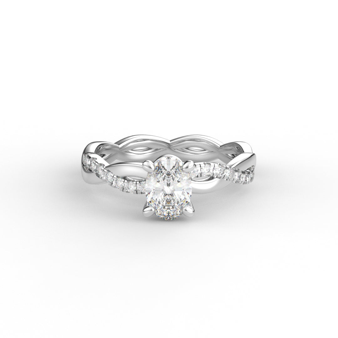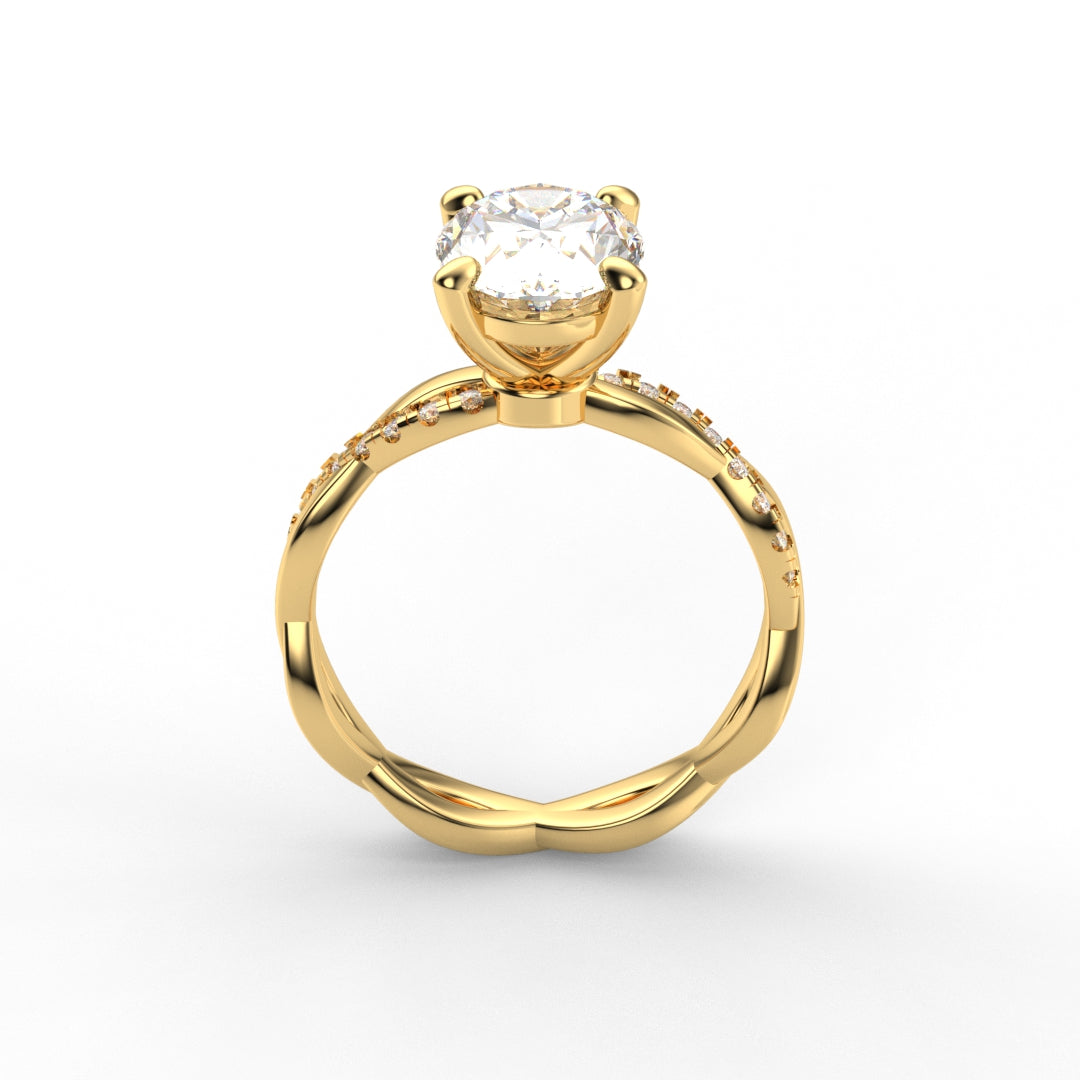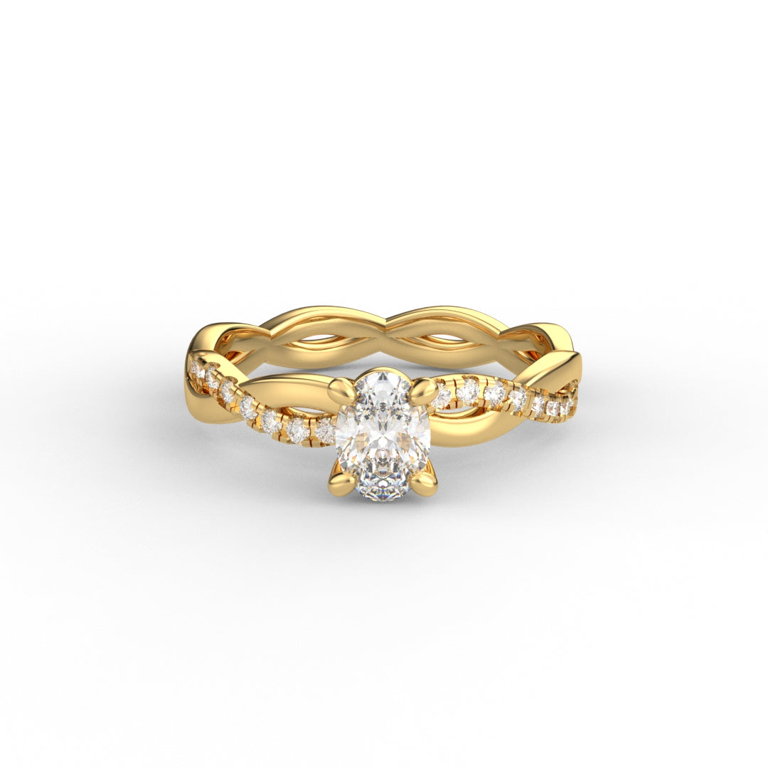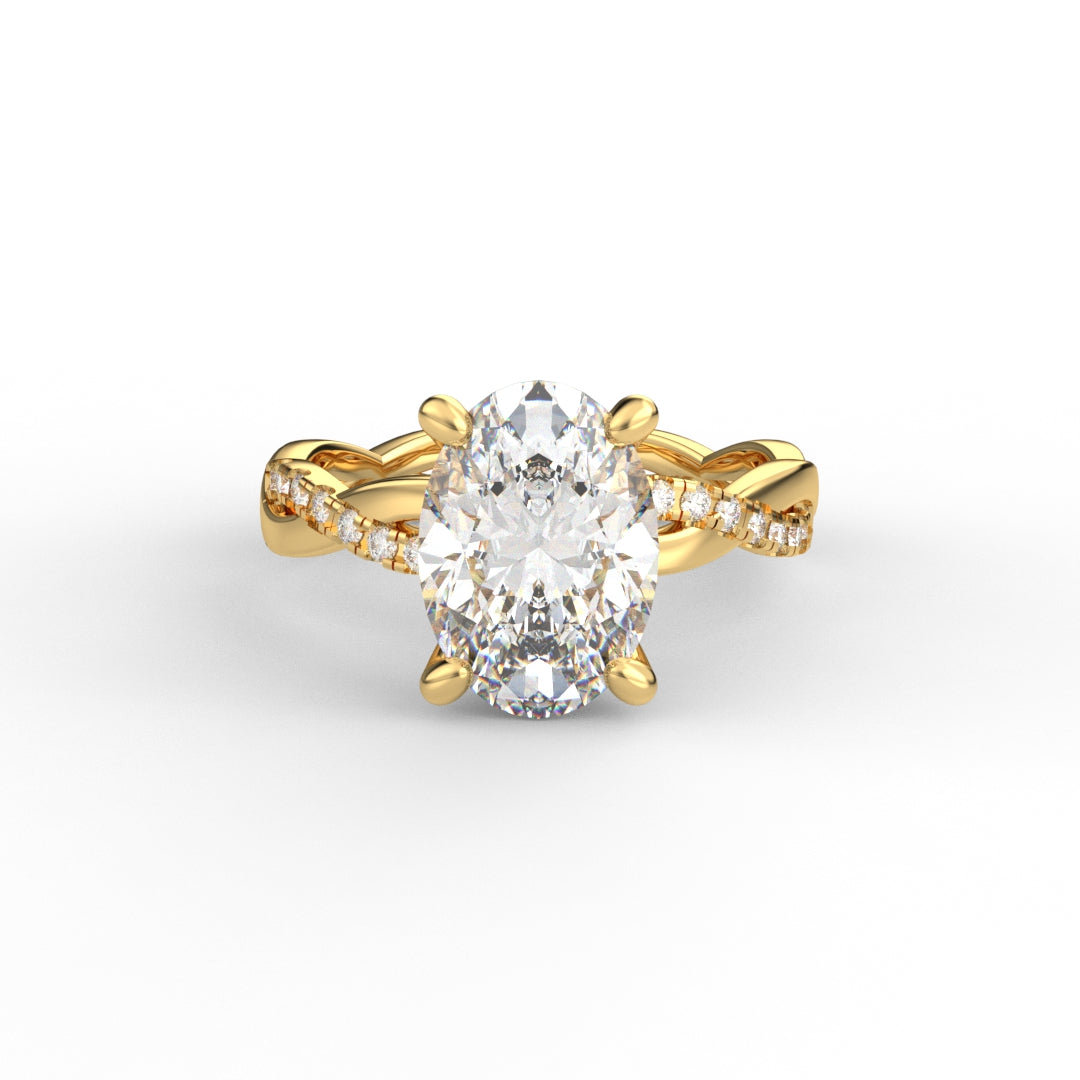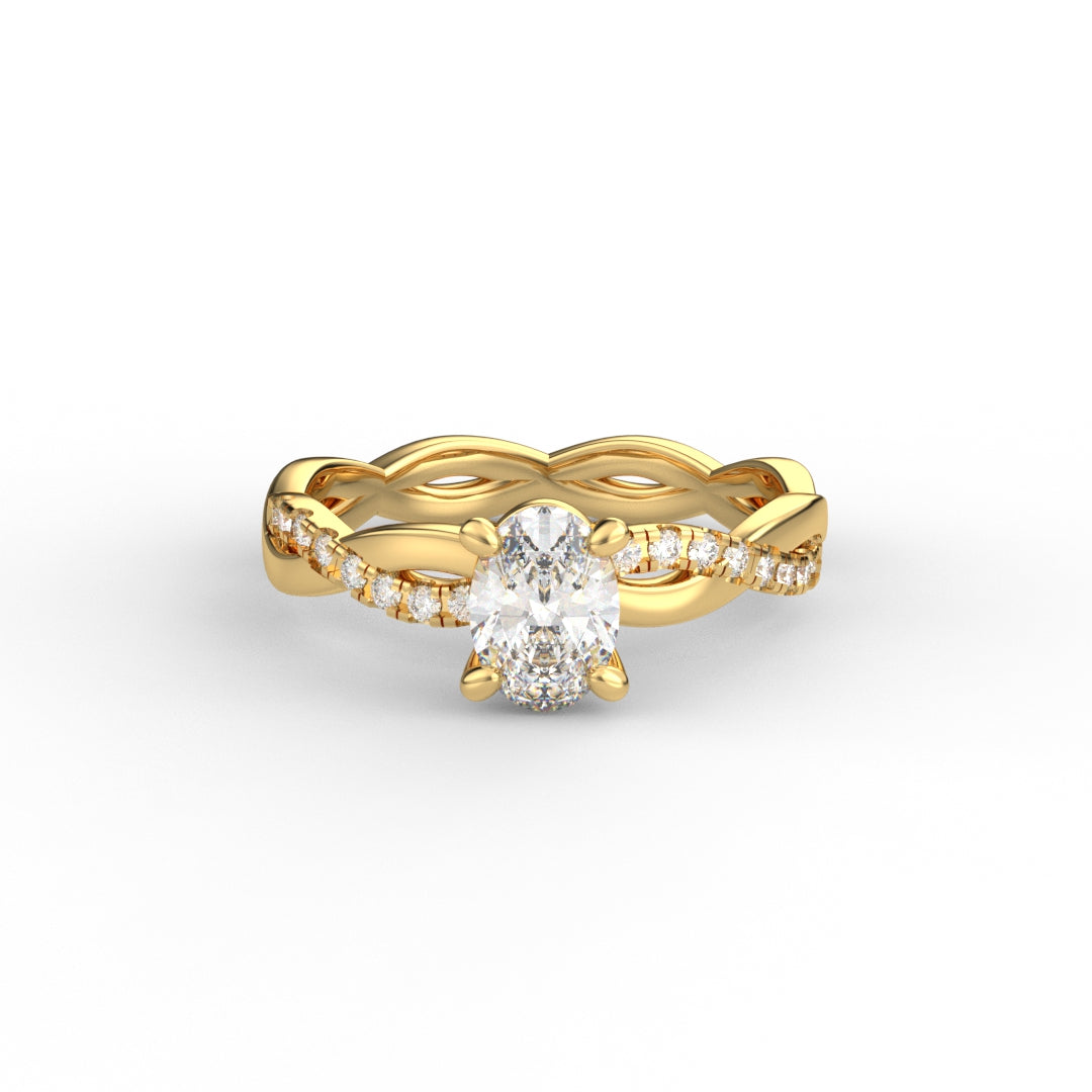 18K Gold Oval Cut Diamond Twist Pavé 1.25mm Engagement Ring Classic Basket