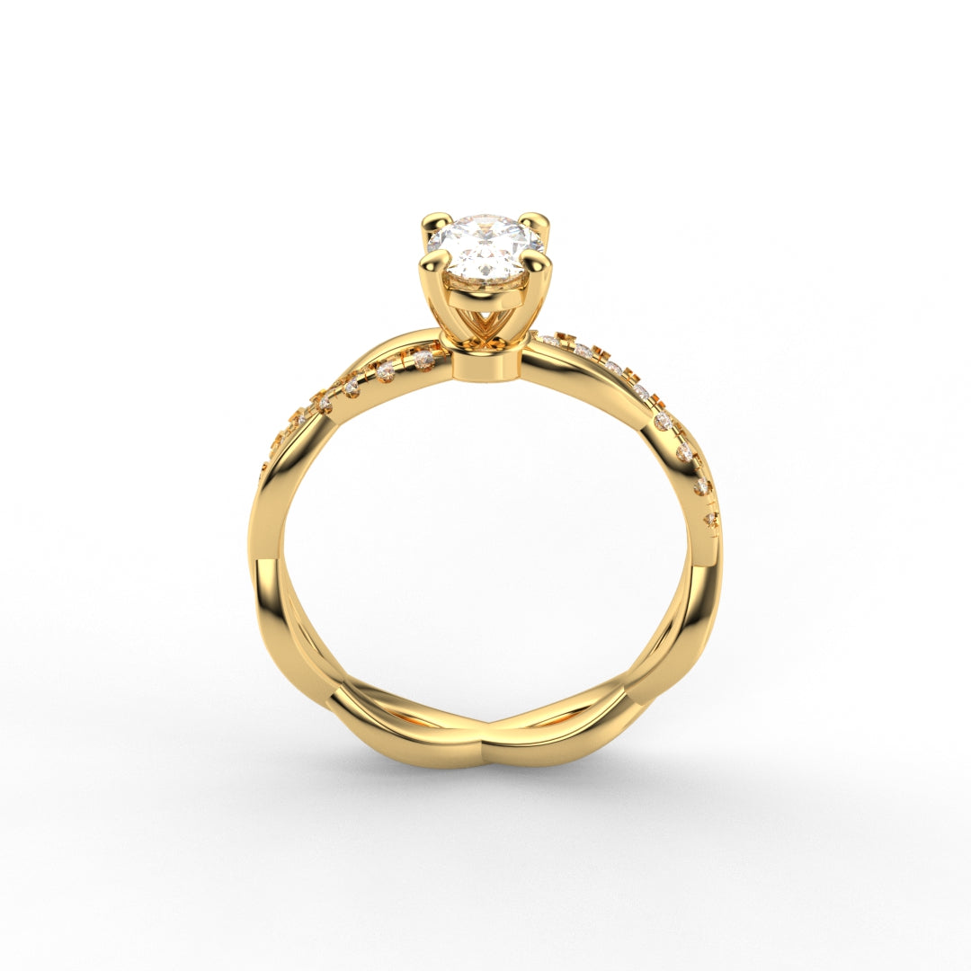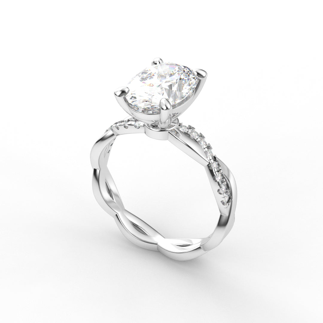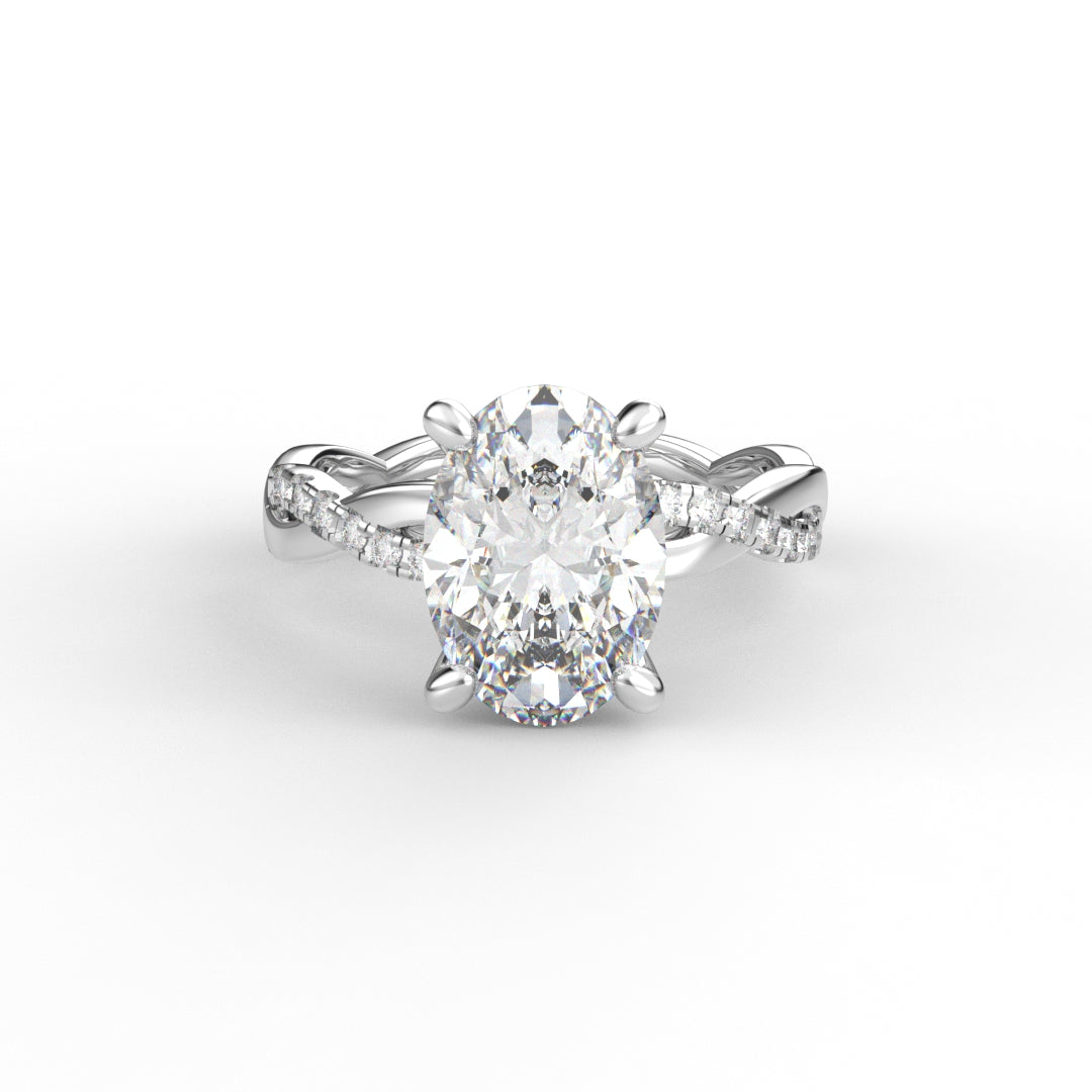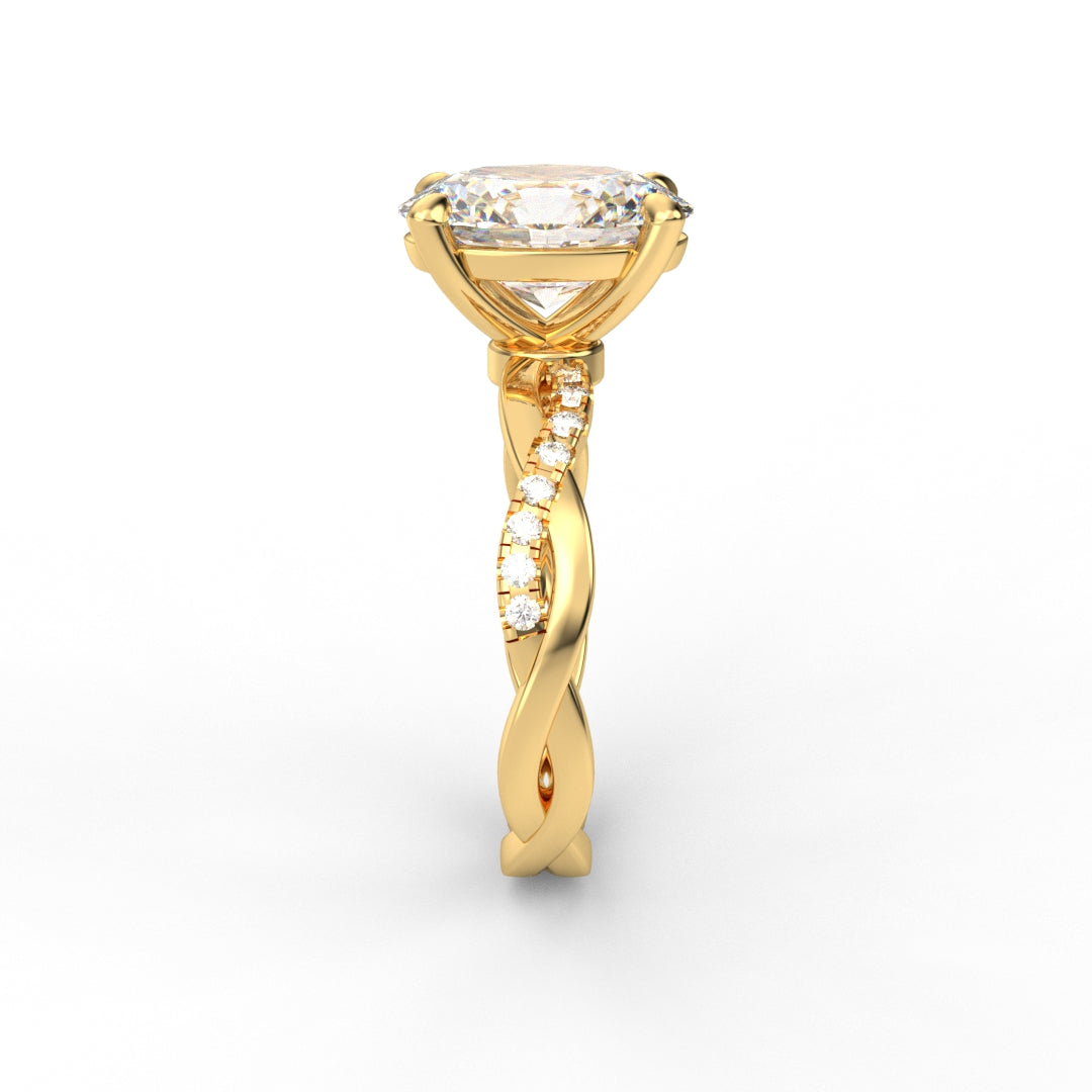 18K Gold Oval Cut Diamond Twist Pavé 1.25mm Engagement Ring Classic Basket