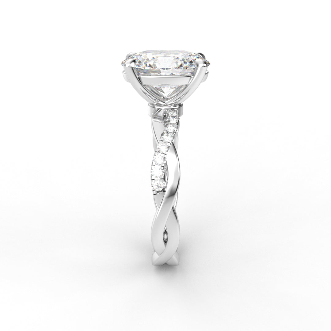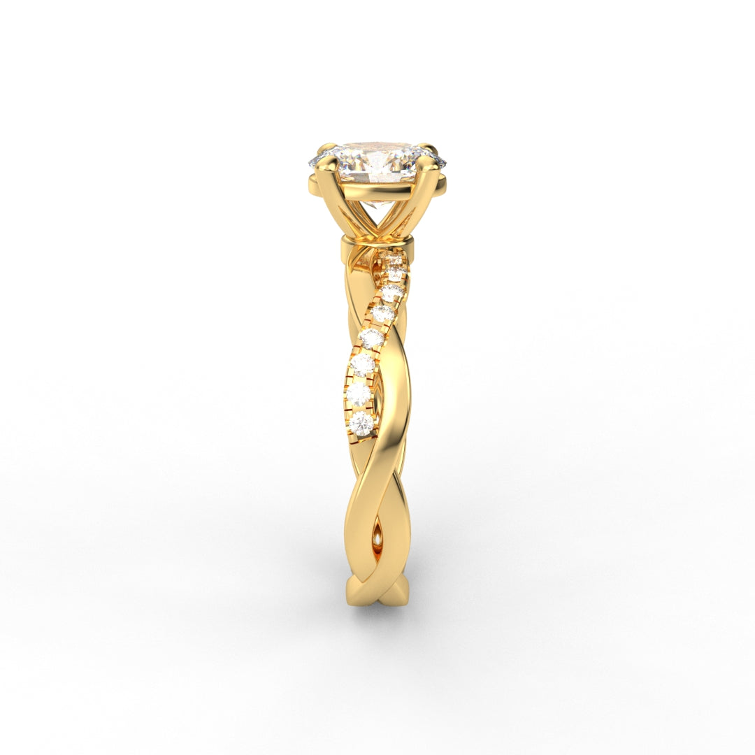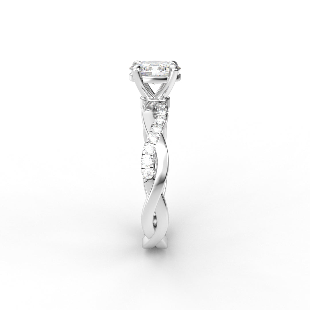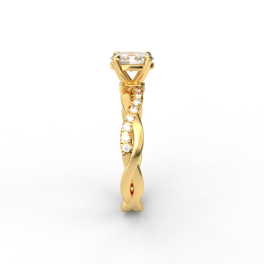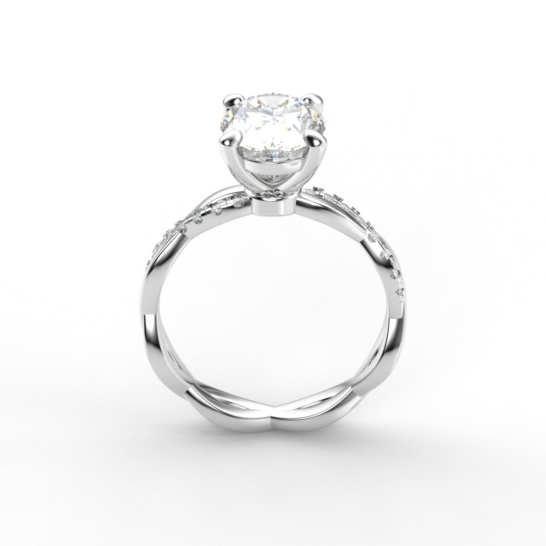 18K Gold Oval Cut Diamond Twist Pavé 1.25mm Engagement Ring Classic Basket