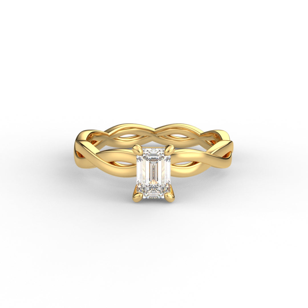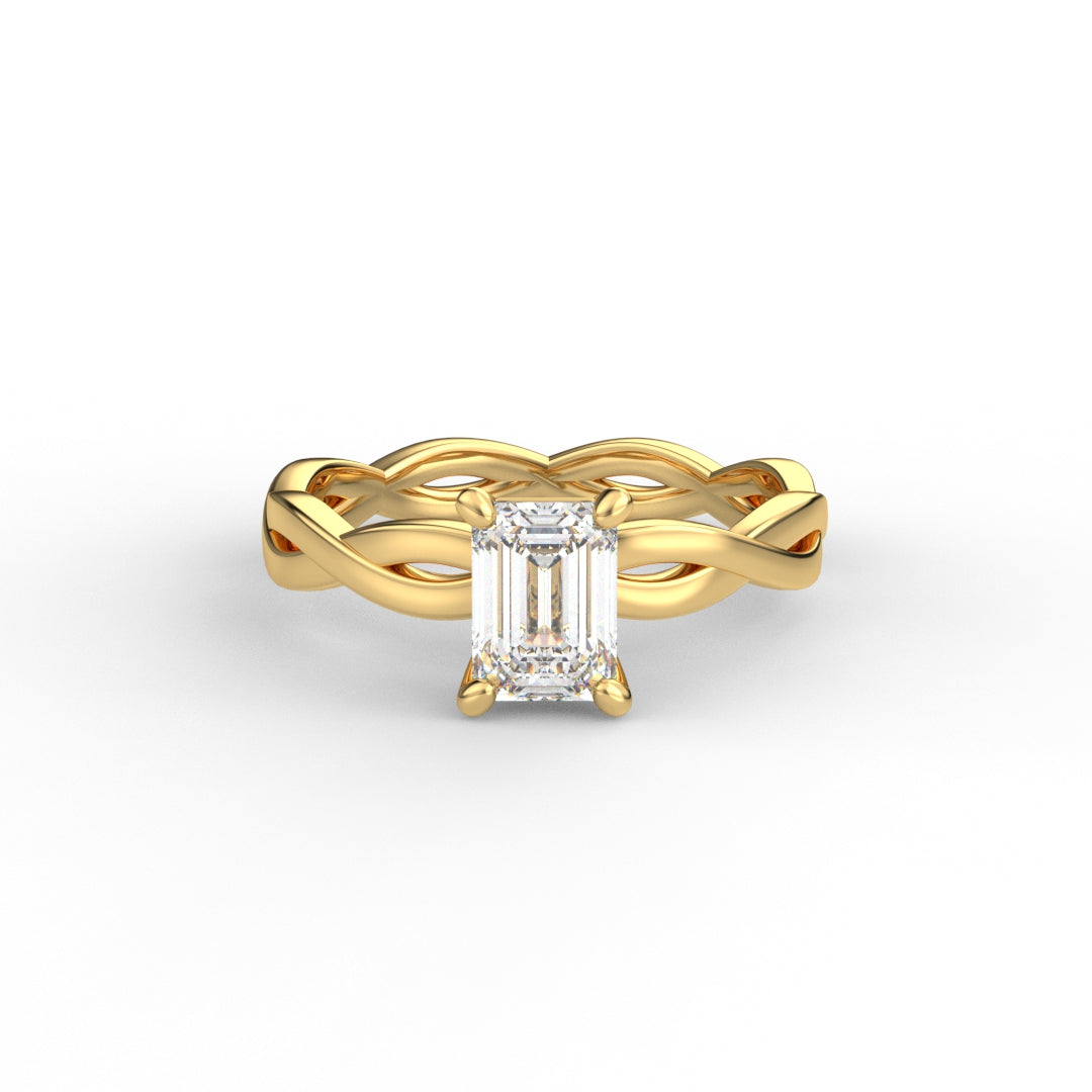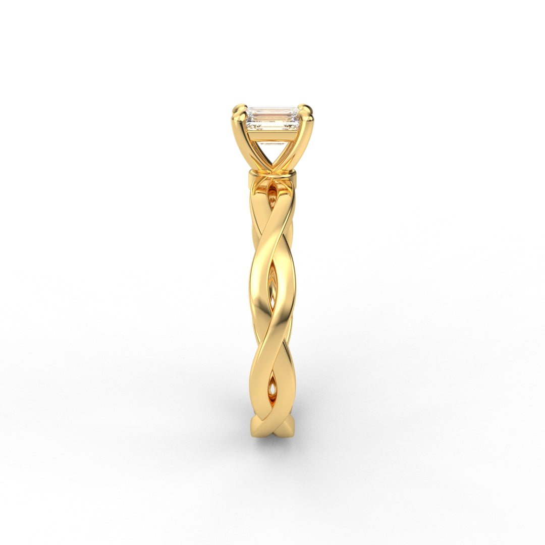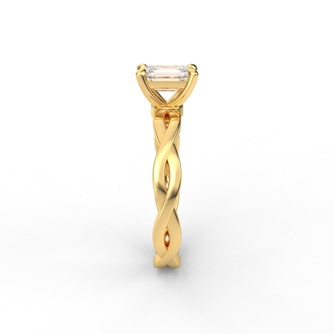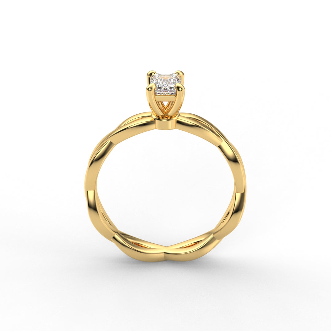 18K Gold Radiant Cut Diamond Twist Engagement Ring Classic Basket