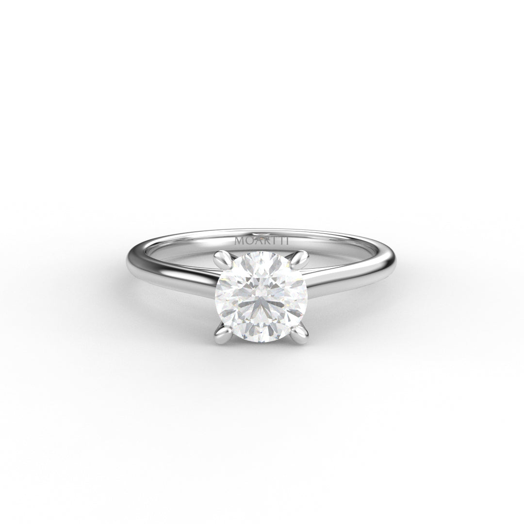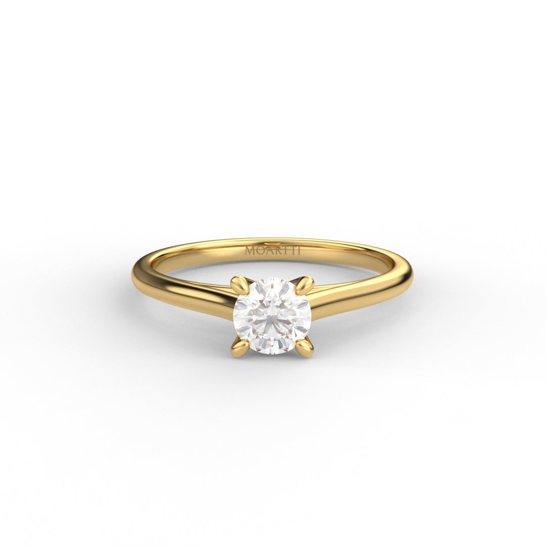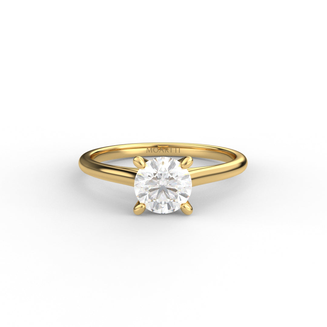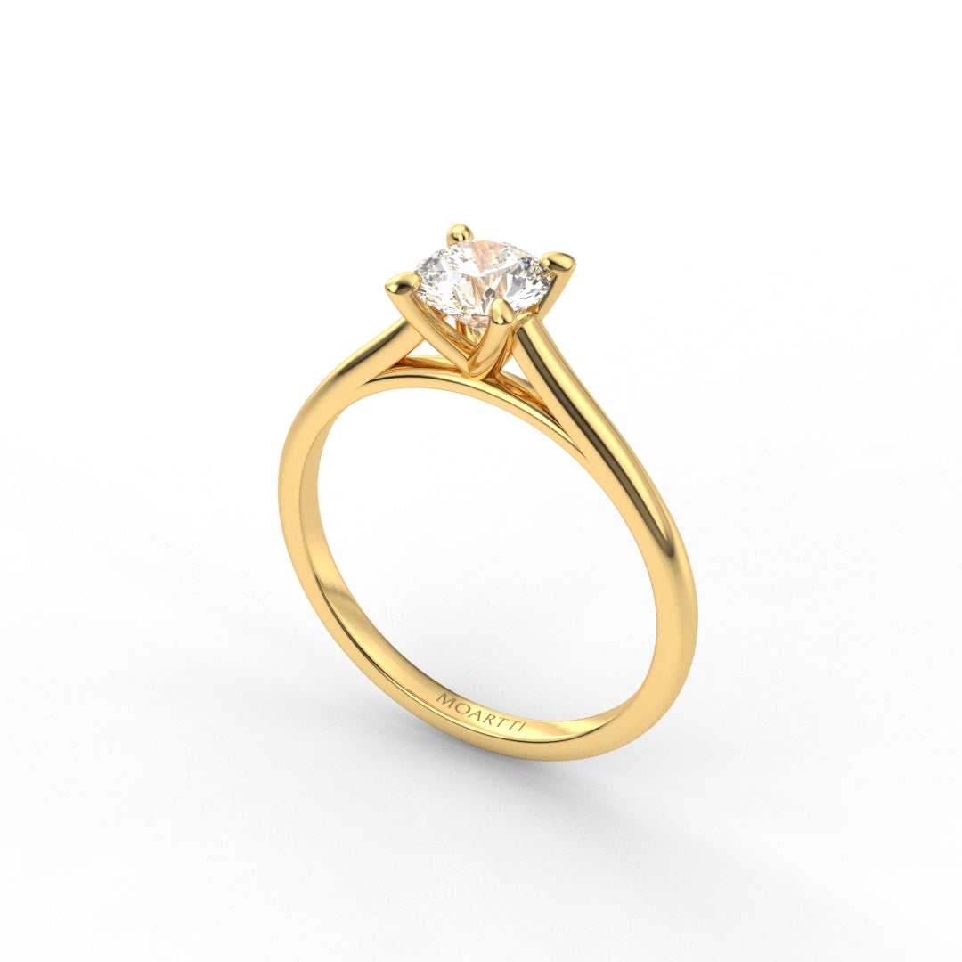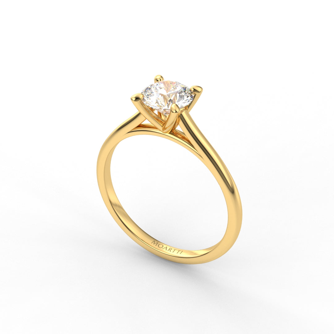 18K Gold Round Cut Diamond Cathedral Engagement Ring 4-Prong