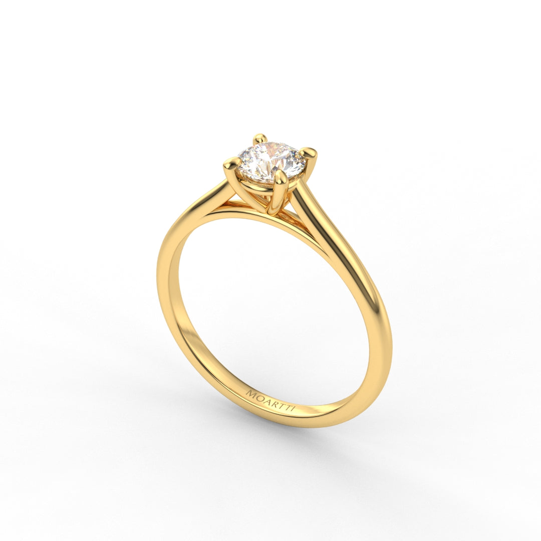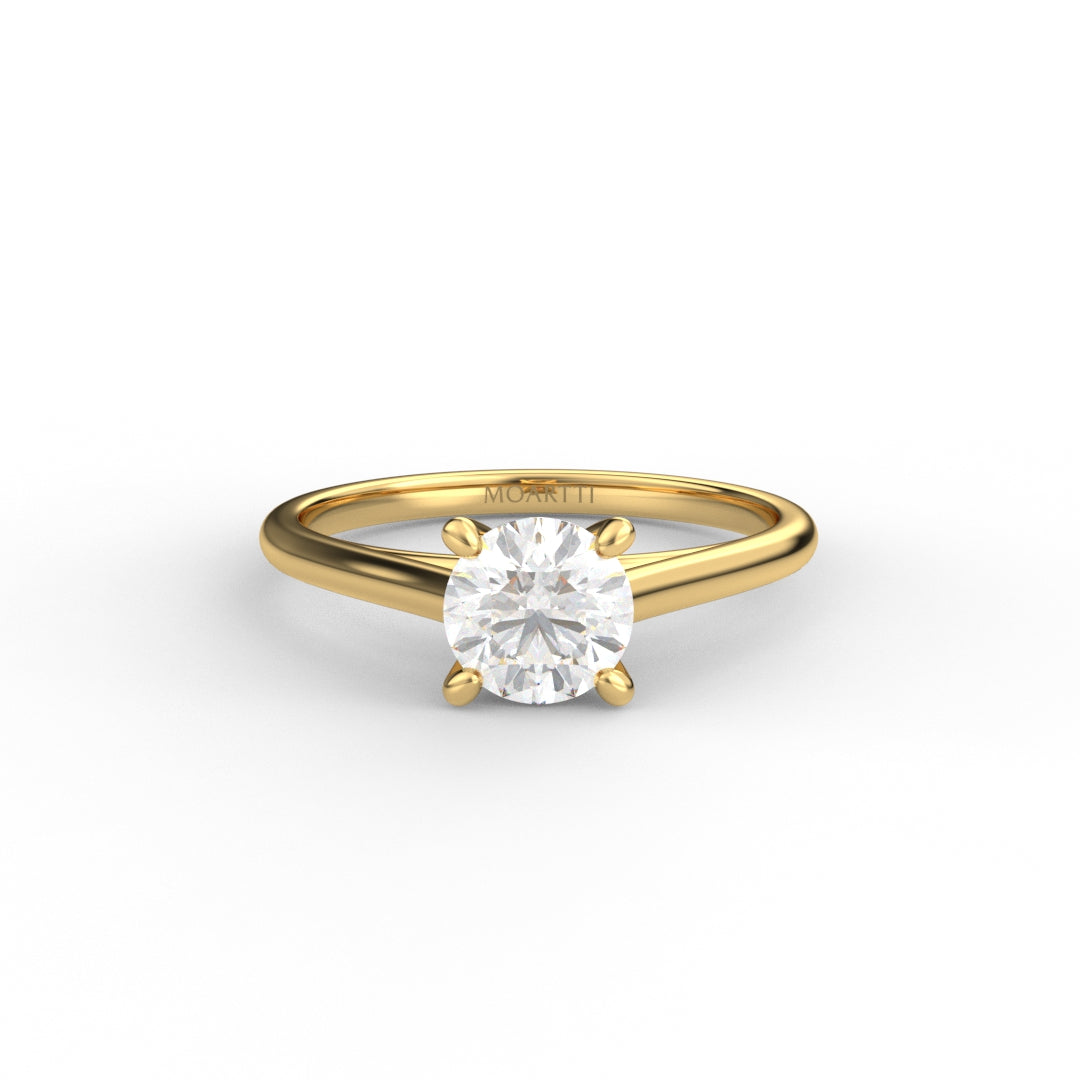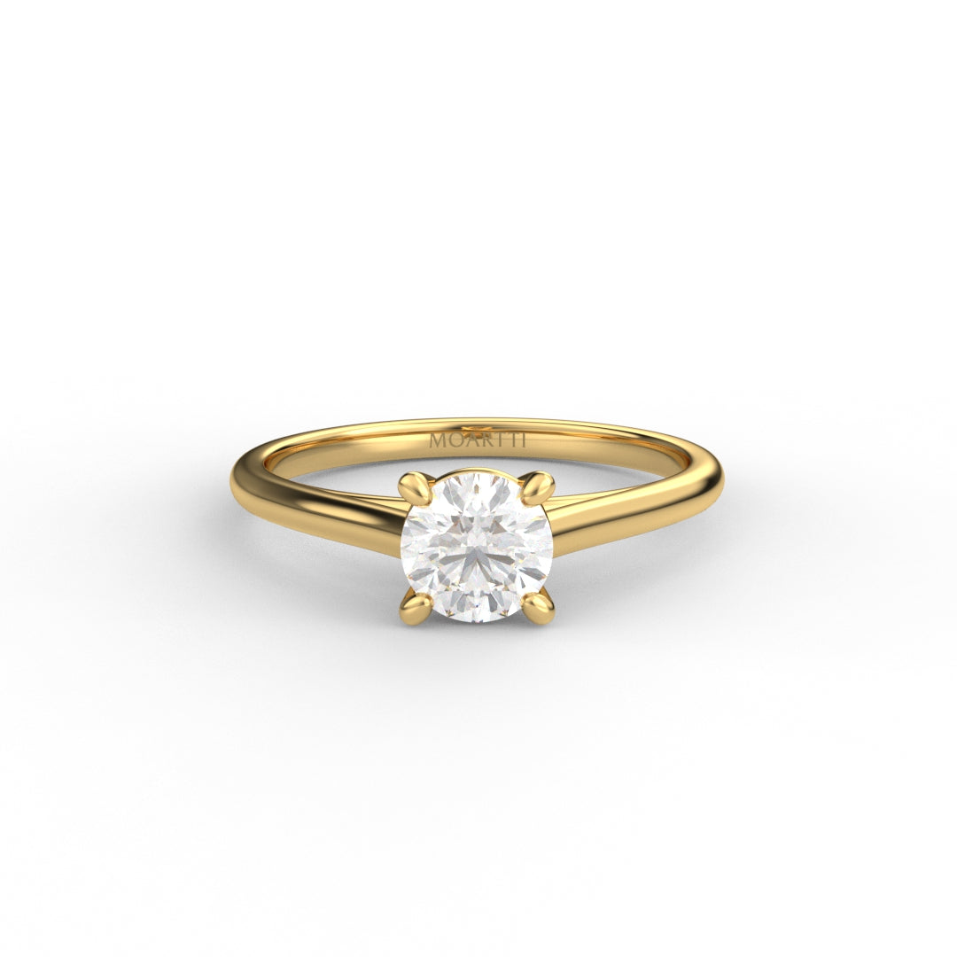 18K Gold Round Cut Diamond Cathedral Engagement Ring Classic Basket