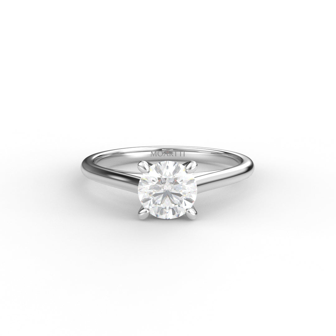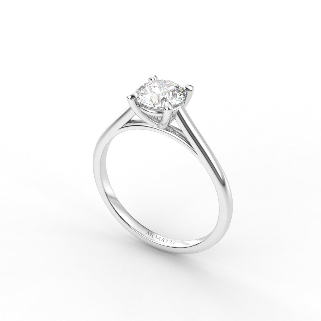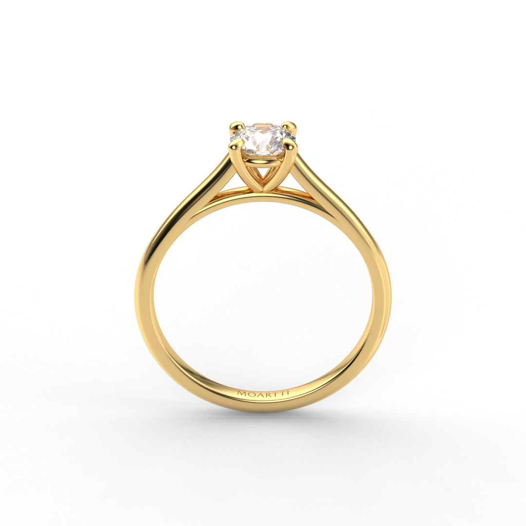 18K Gold Round Cut Diamond Cathedral Engagement Ring Classic Basket