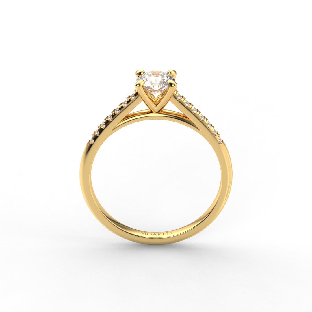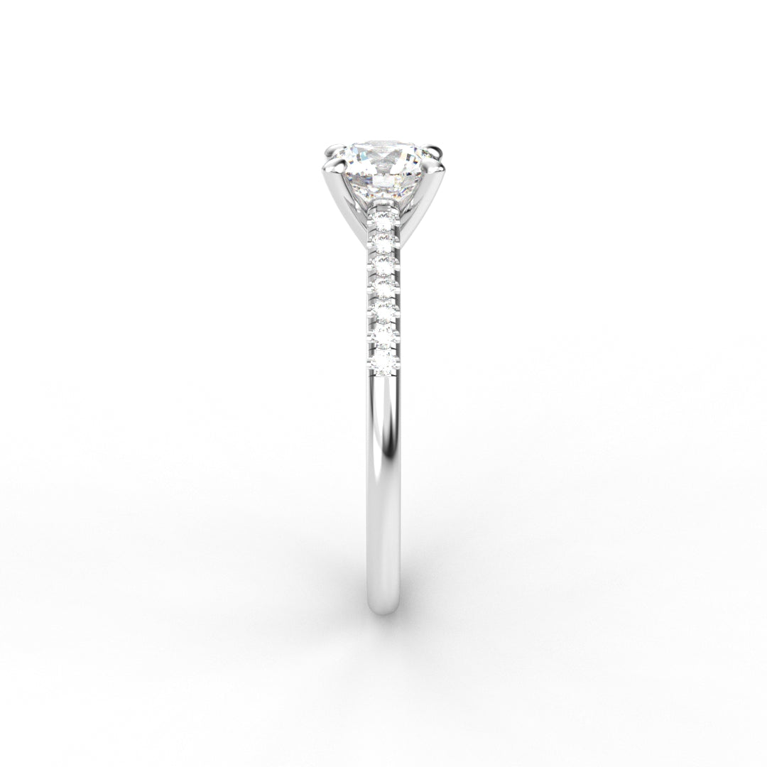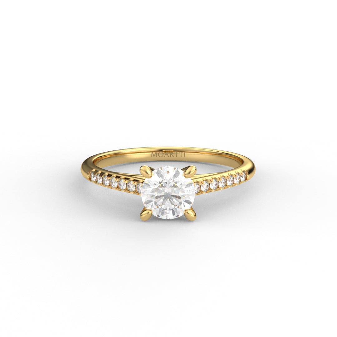 18K Gold Round Cut Diamond Cathedral Pavé 1.25mm Engagement Ring 4-Prong