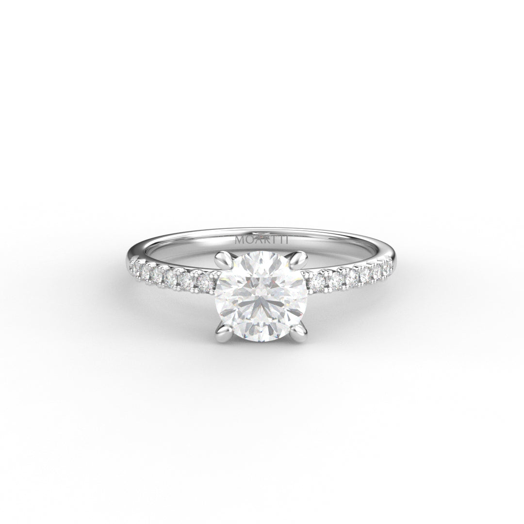18K Gold Round Cut Diamond French Pavé 1.25mm Engagement Ring Classic Basket