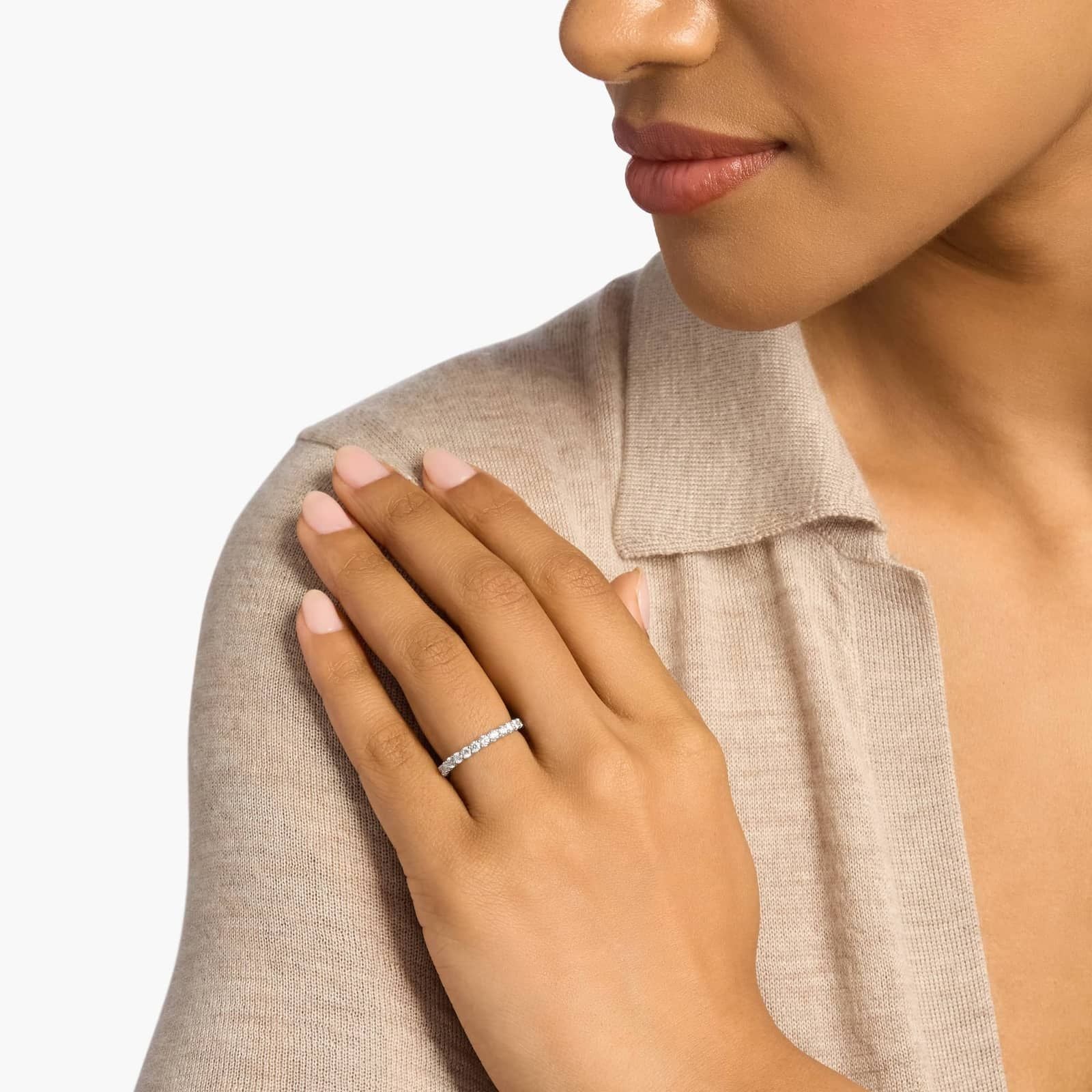 Named for the moon, this eternity ring features gently rounded bezel-set diamonds that glow softly against the skin, like captured starlight. The low-profile design offers comfort and subtlety, while the continuous band symbolizes endless devotion. Solid 18K gold enhances its quiet radiance.