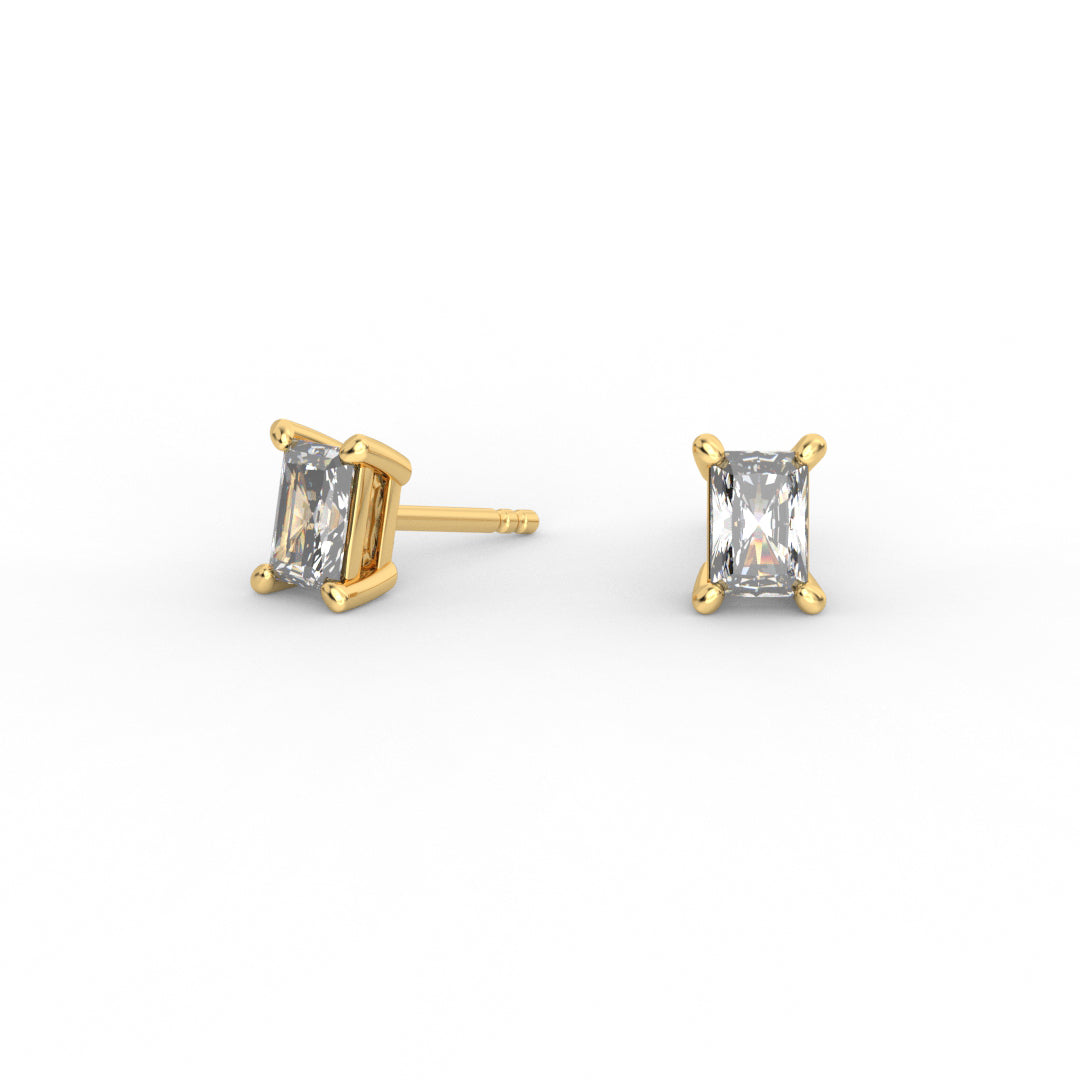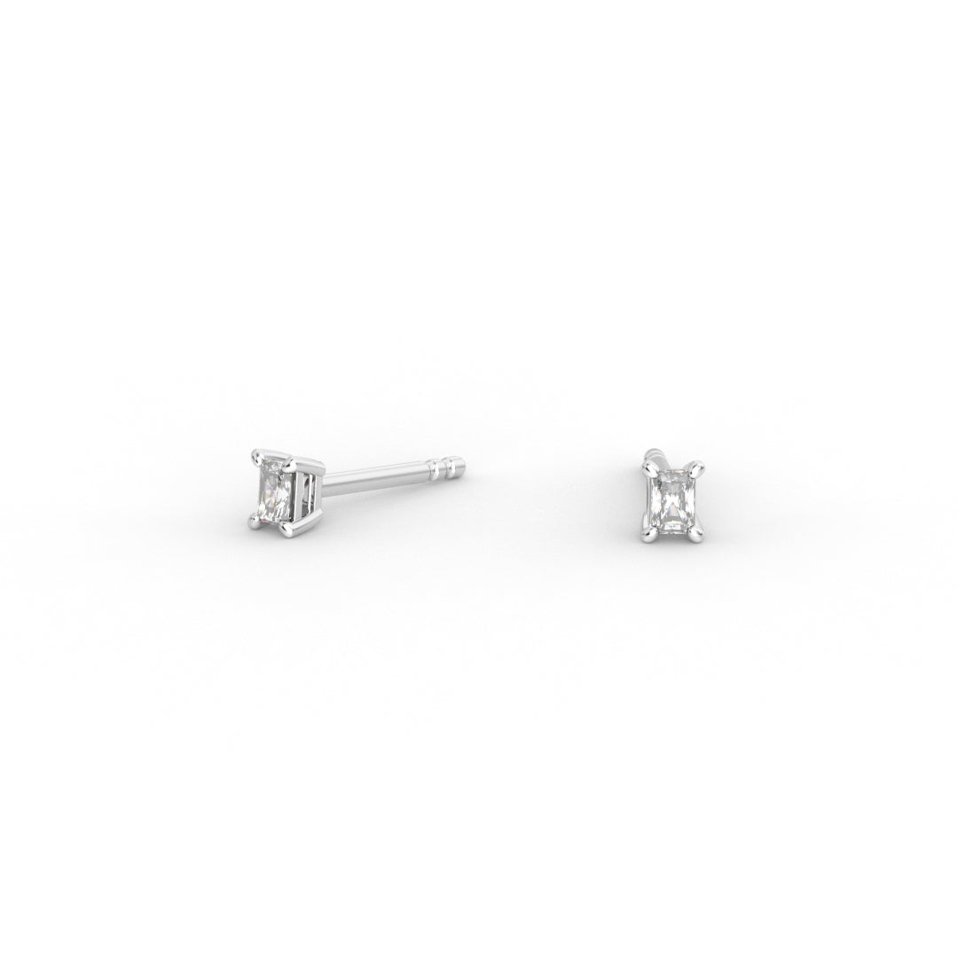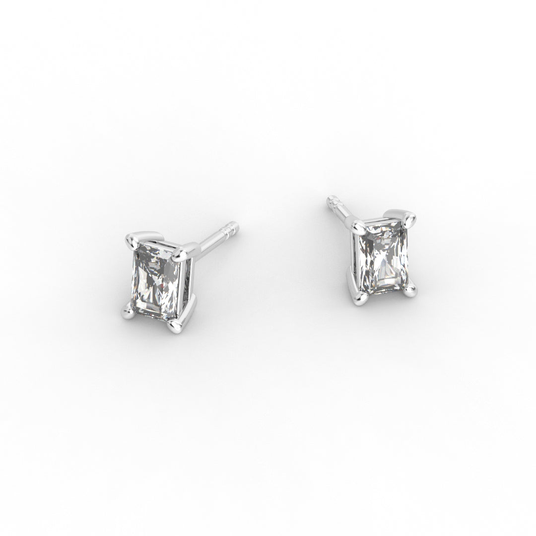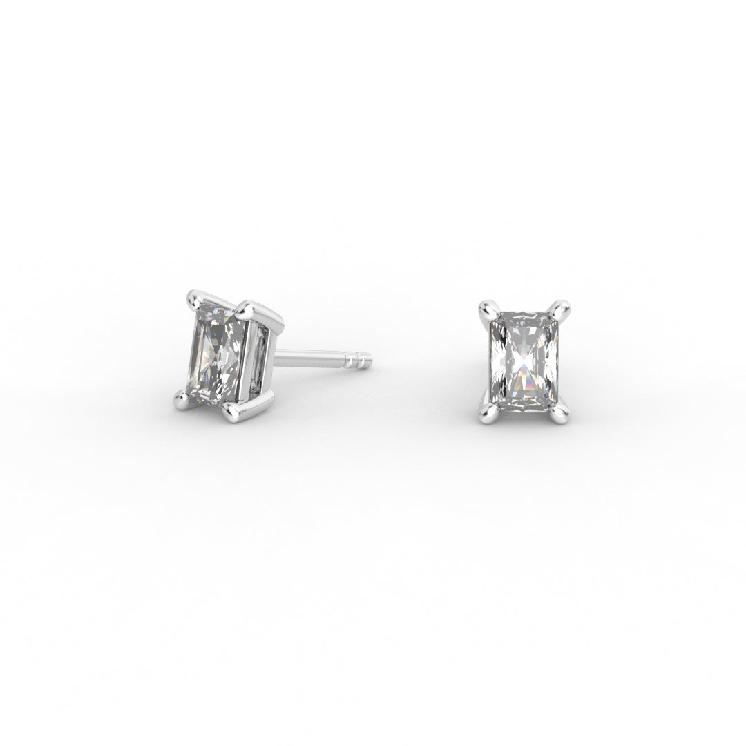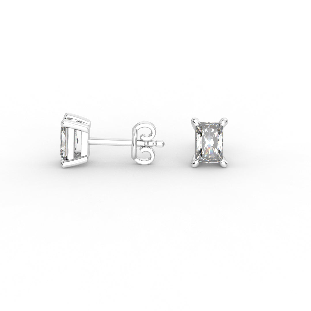 Radiant Brilliant Diamond Stud Earrings - Four Prong Setting 18K White Gold